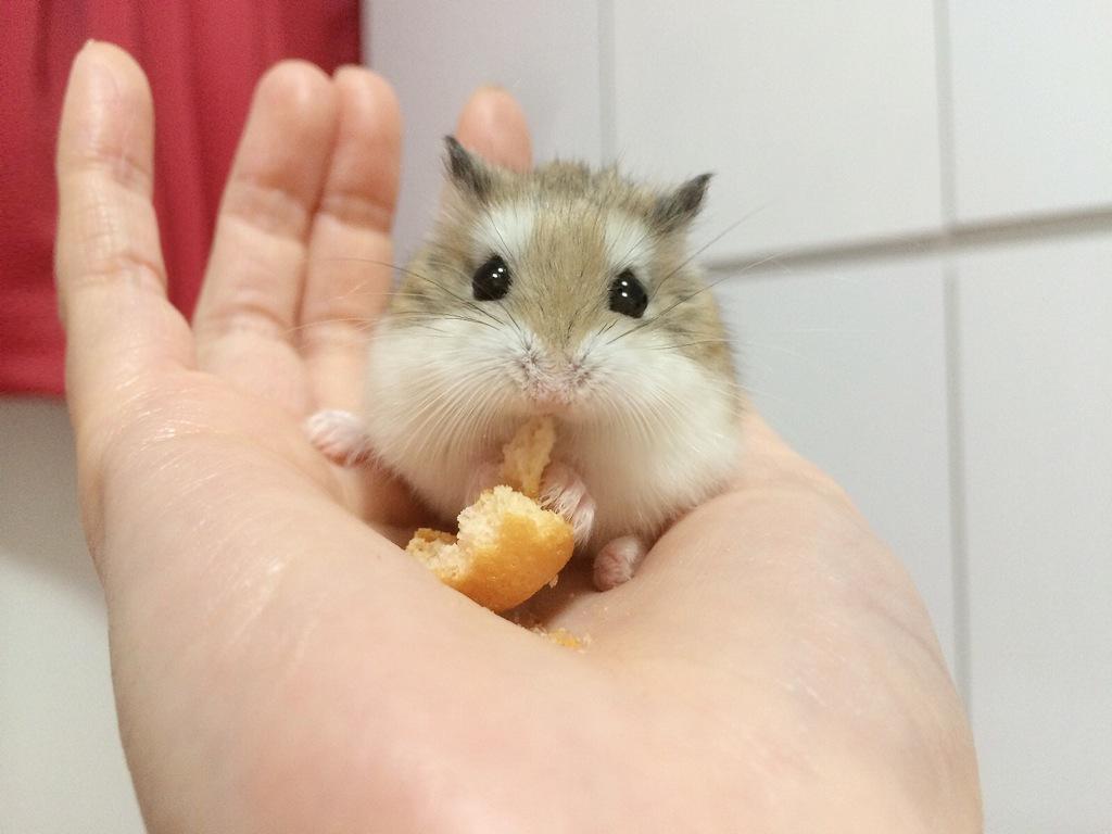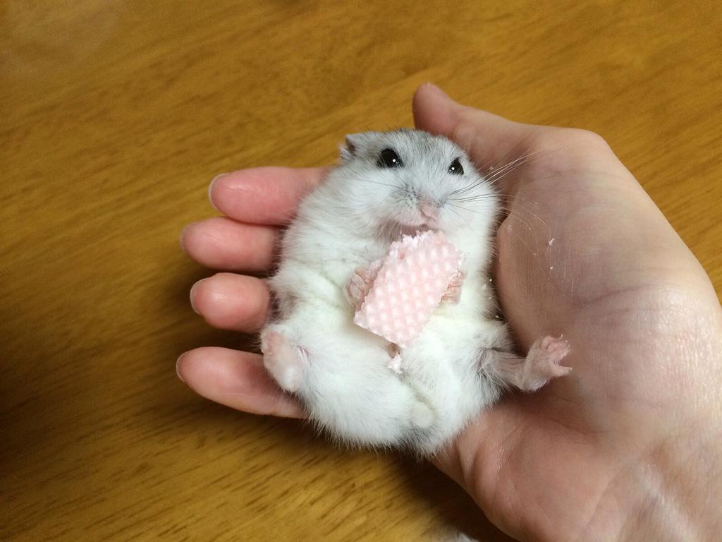 野生を忘れたハムスターの、無防備な毛繕いをご覧ください。