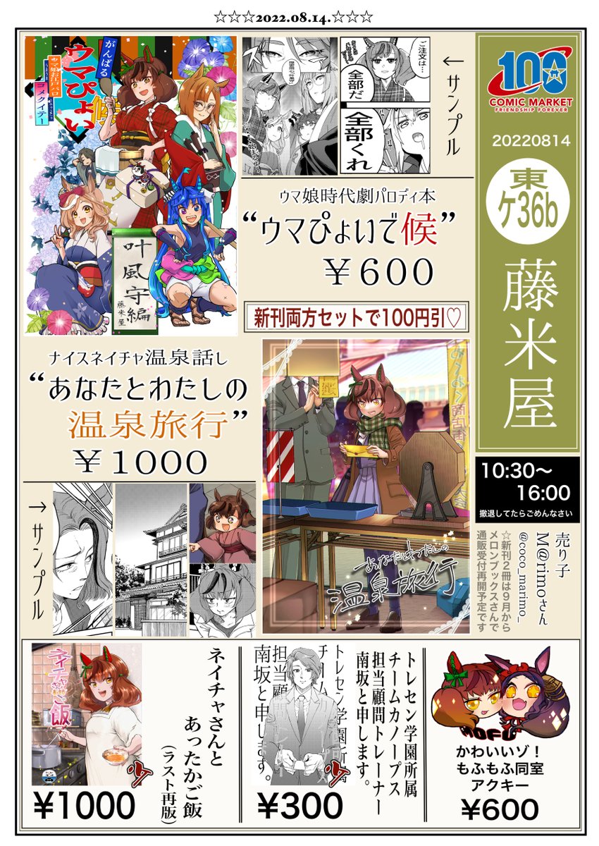 2022年8月14日夏コミ2日目“藤米屋”(東ケ36b)のお品書きです。