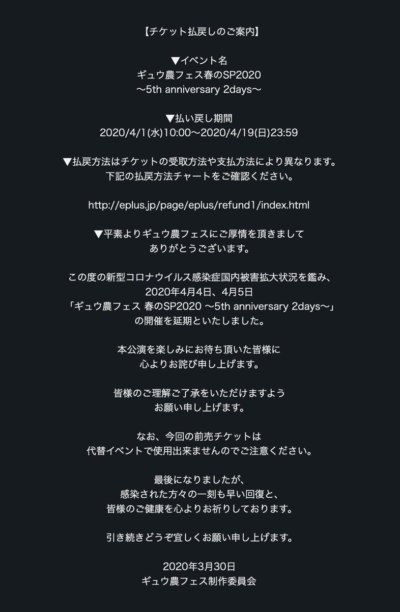 ▼本公演を楽しみにお待ち頂いた皆様に心よりお詫び申し上げます。