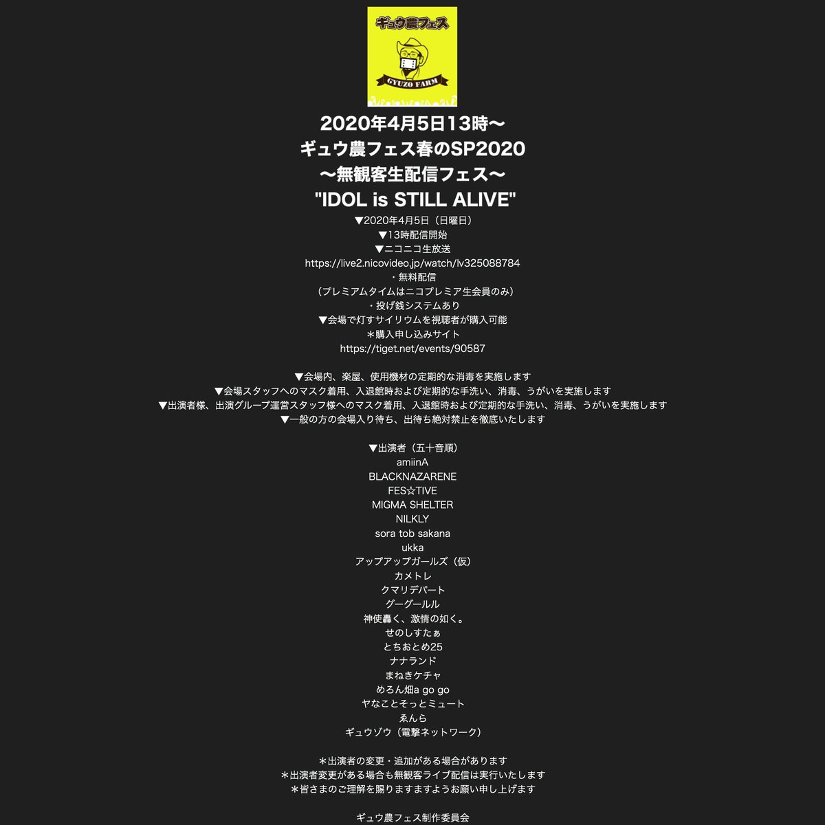 #ギュウ農無観客フェス twitter.com/gyuno_fes/stat…