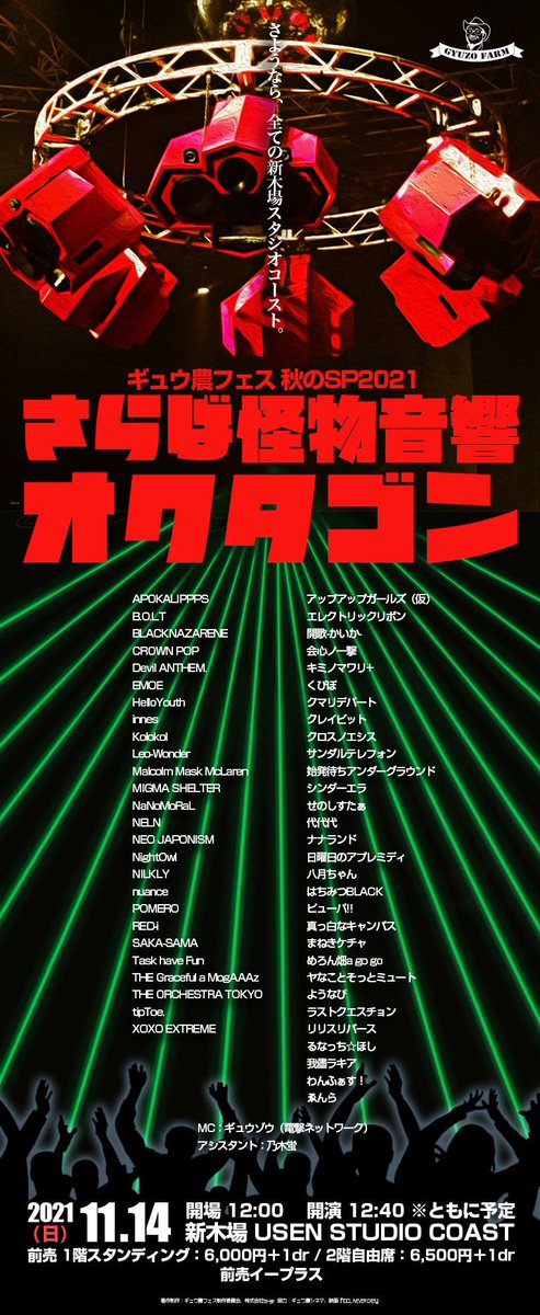 さらば新木場!さらばオクタゴン!ギュウ農フェス秋のSP2021 出演者第一弾57組を発表