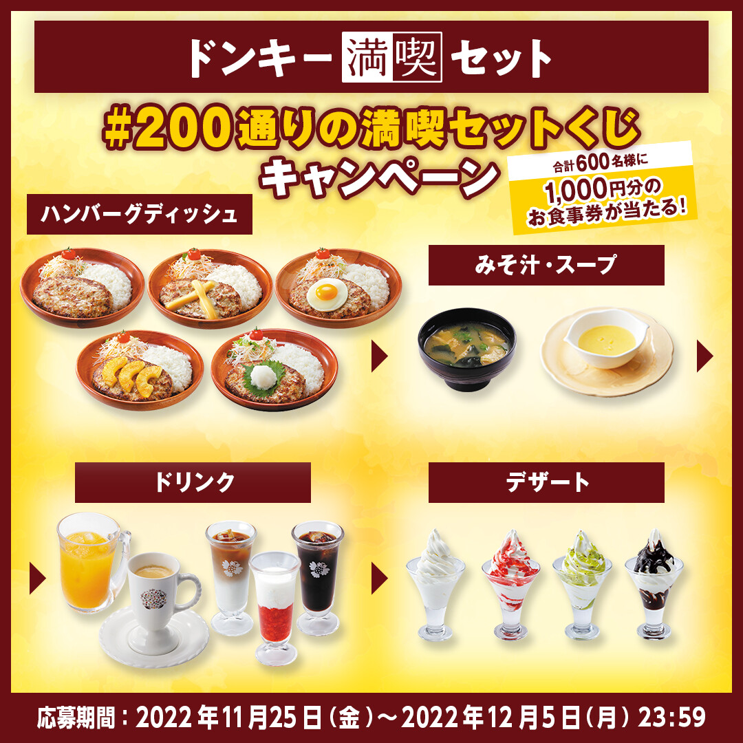 @bikkuri__donkey をフォロー&11/25〜12/5までの期間中にキャンペーン投稿をRTで、1,000円分のお食事券が合計600名様に当たる🎁