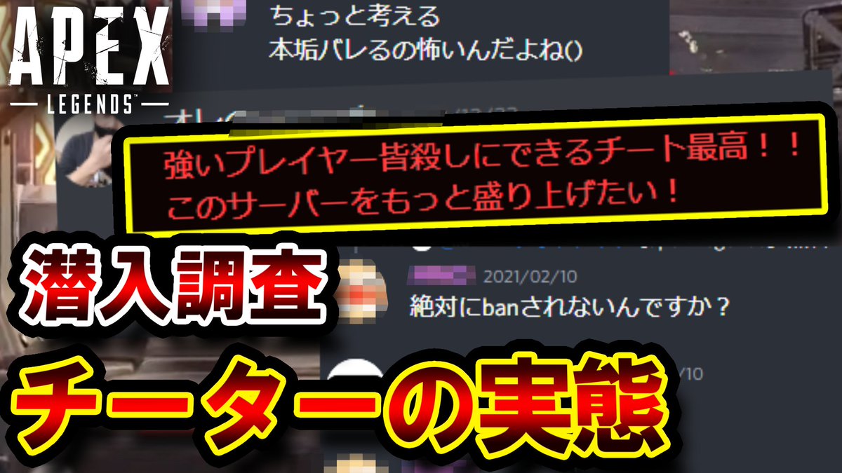 【潜入調査】"ガチの犯○者"と "人格破○者" の巣窟。チート使用者のコミュニティ内部が「警察介入レベル」でやばかった件 | ApexLegends youtu.be/RastAragwcg @YouTubeより