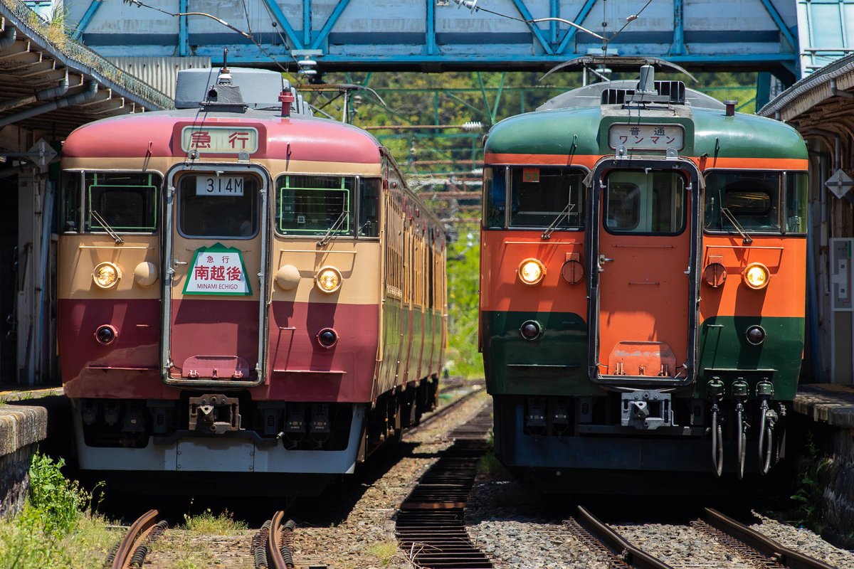 今日はえちごトキめき鉄道の団体臨時列車に参加してきました。妙高高原駅では有志が用意したHMを何枚か付け替えしなの鉄道の115系と並んだ所を記念撮影。充分以上に楽しめました😀