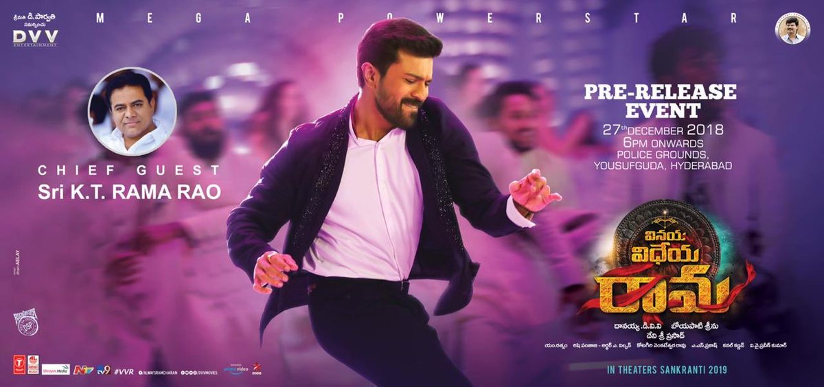 Very happy to announce that Sri @KTRTRS will be the chief guest for #VinayaVidheyaRama Pre Release Event on 27th December.