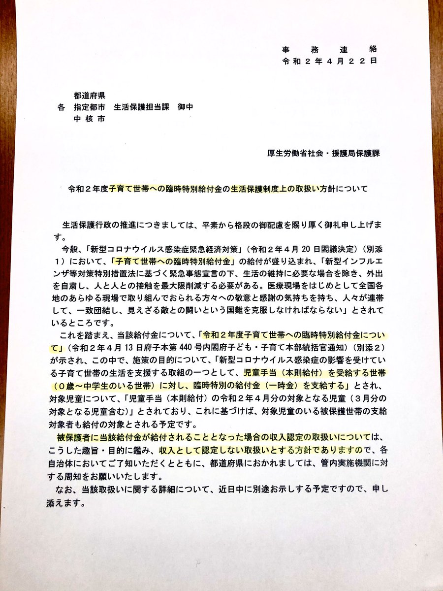 引き続き連携し、収入減だけではひろえない困っている方々のため更なる支援を強く訴えます。