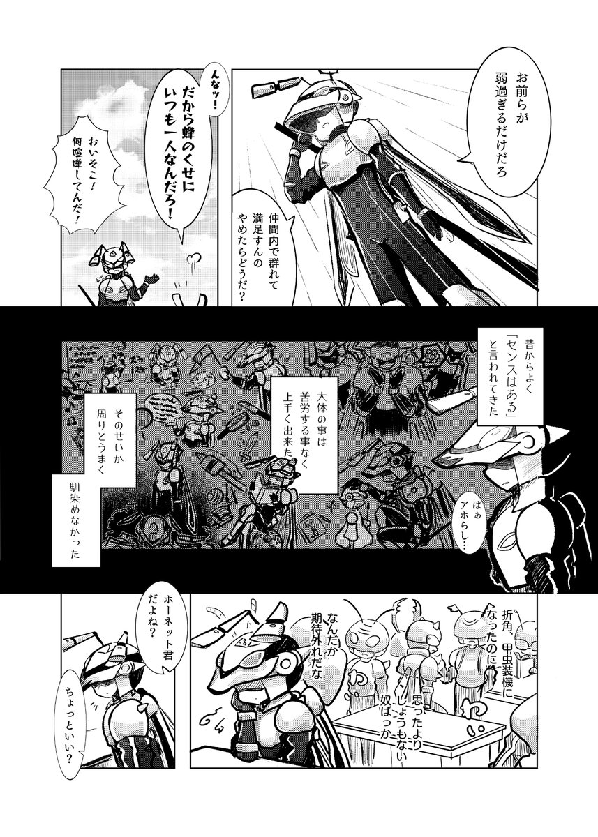 漫画 ダンセルとホーネットが出会った話(1/9) 3年位前に描いた幻覚です、読んで感想くれると小躍りして喜びます。甲虫装機はいいぞ。