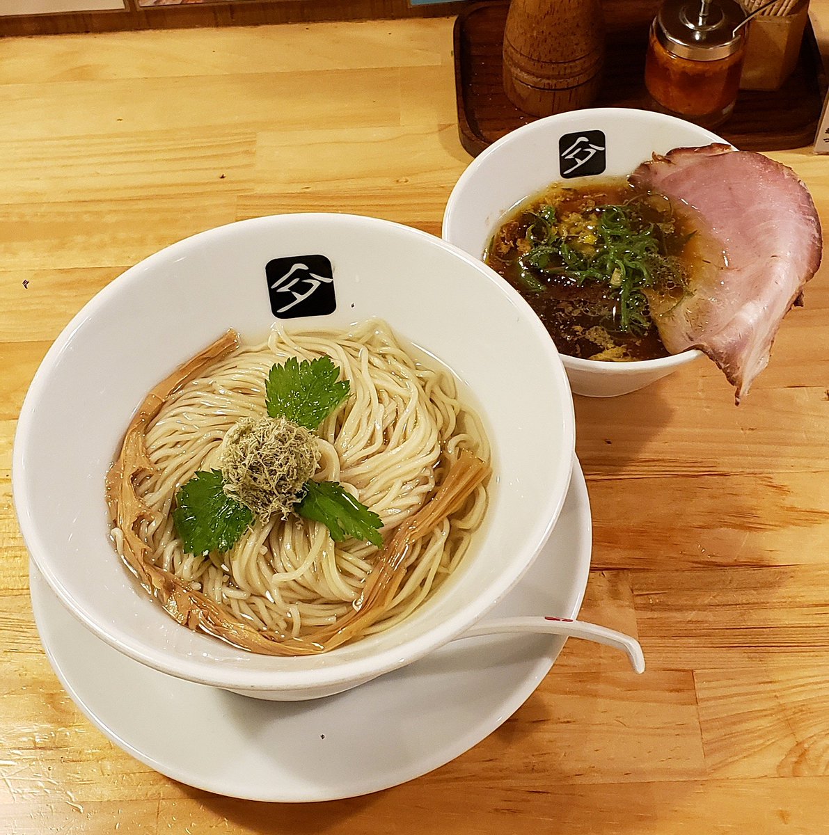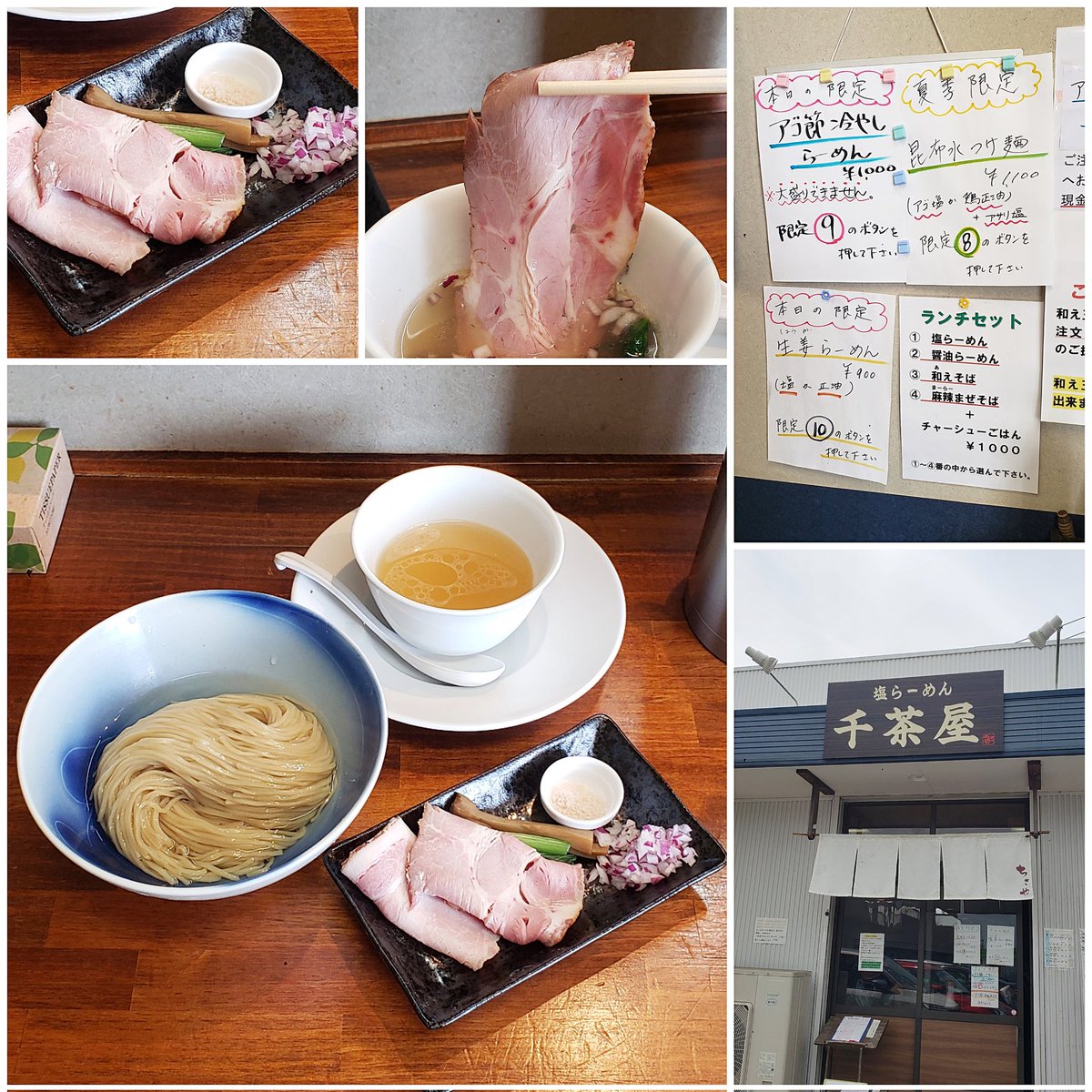 【塩らーめん 千茶屋】太田 限定 昆布水つけ麺 アサリ塩 訪麺🍜淡く清らかな昆布水に浸るエッジの効いた自家製麺!黄金色のつけ汁に潜らせると…輪郭のある塩味に豊潤な浅利の旨味…魚介出汁が複雑に相まって奥深い味わいとはんなりな余韻をもたらす珠玉の逸杯♪めッちゃウマ──ッ!! 超絶美味‼️🙏💥💯