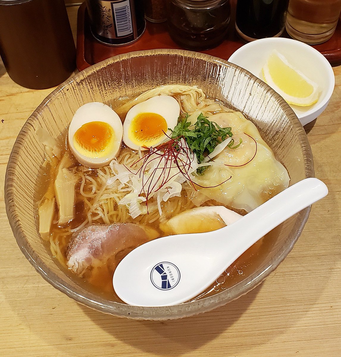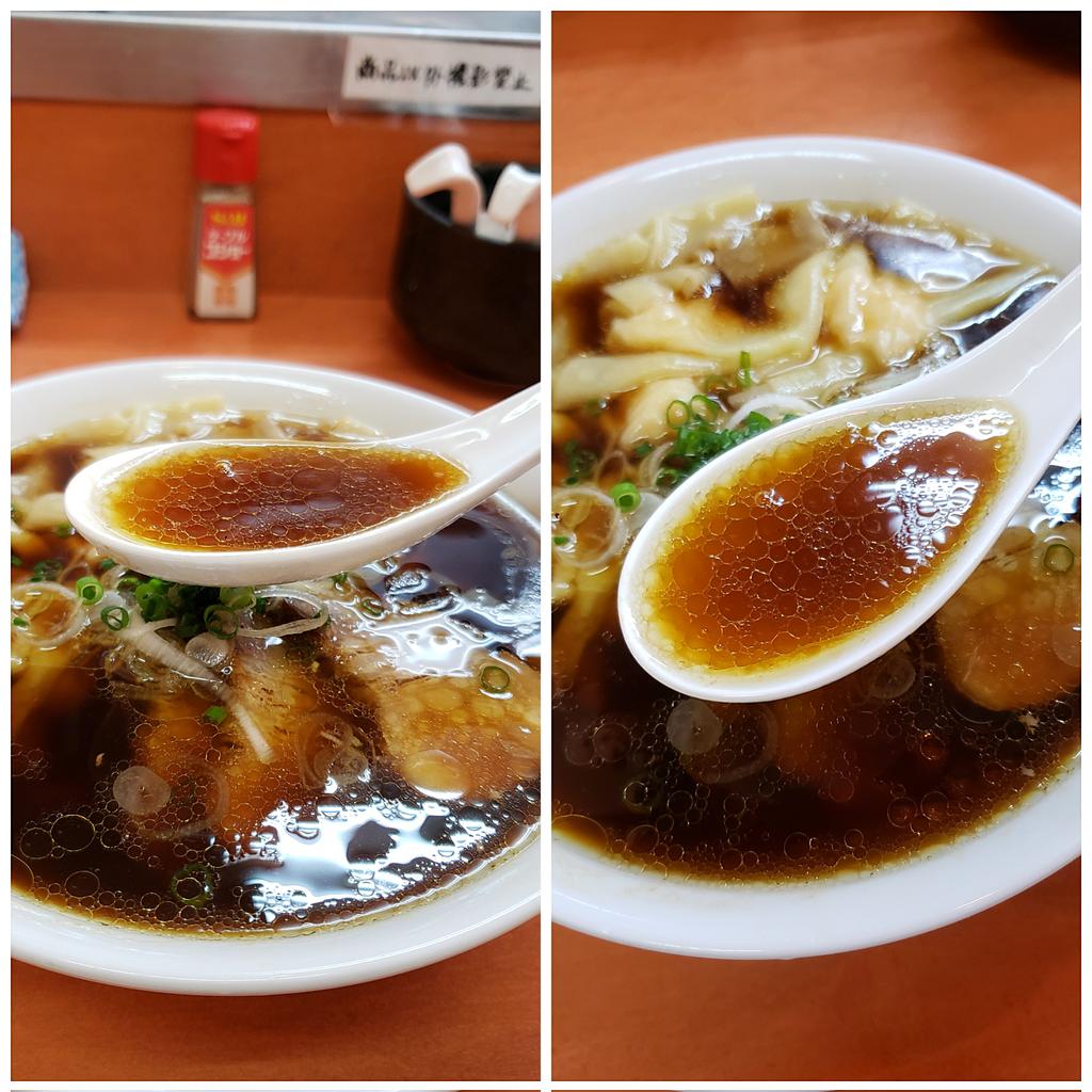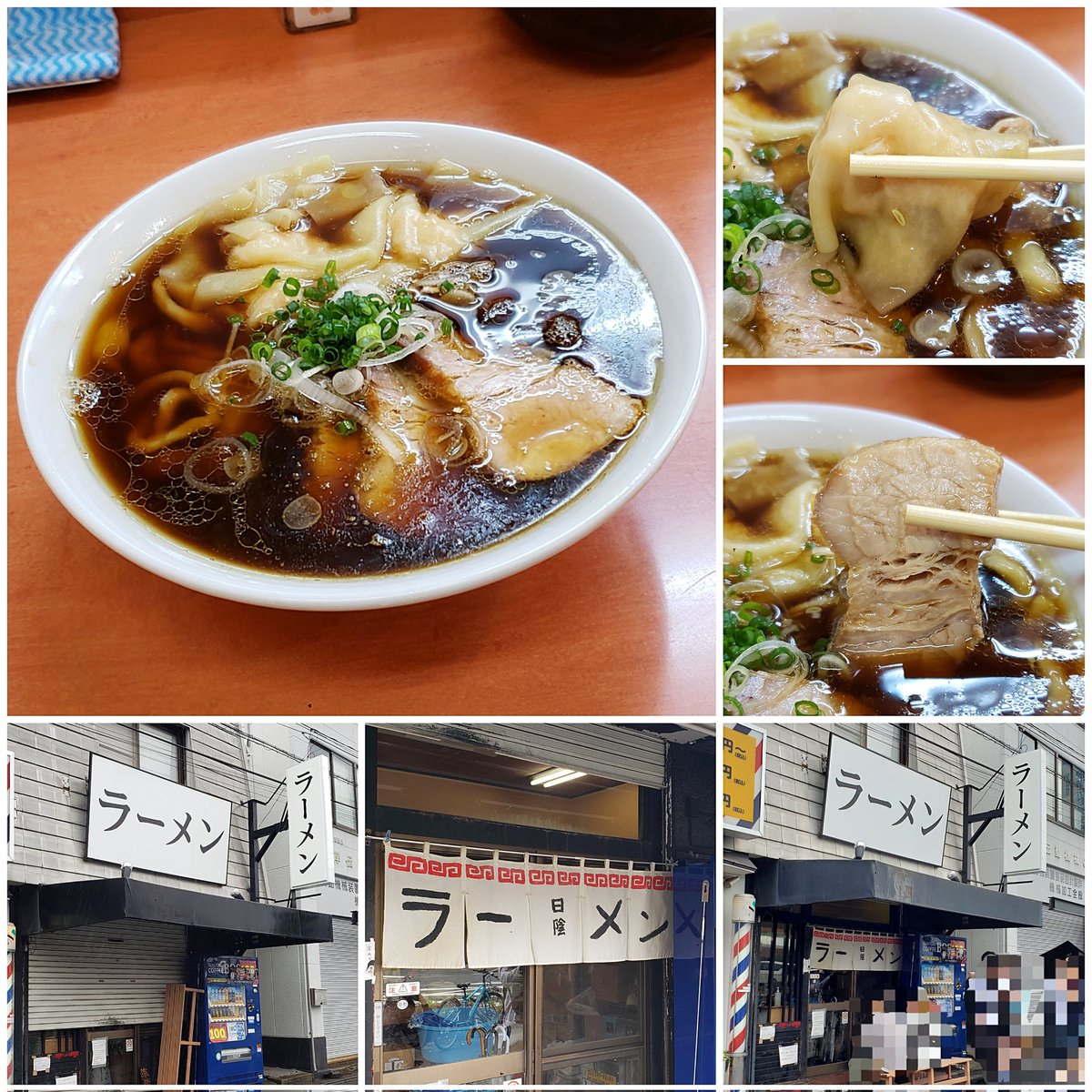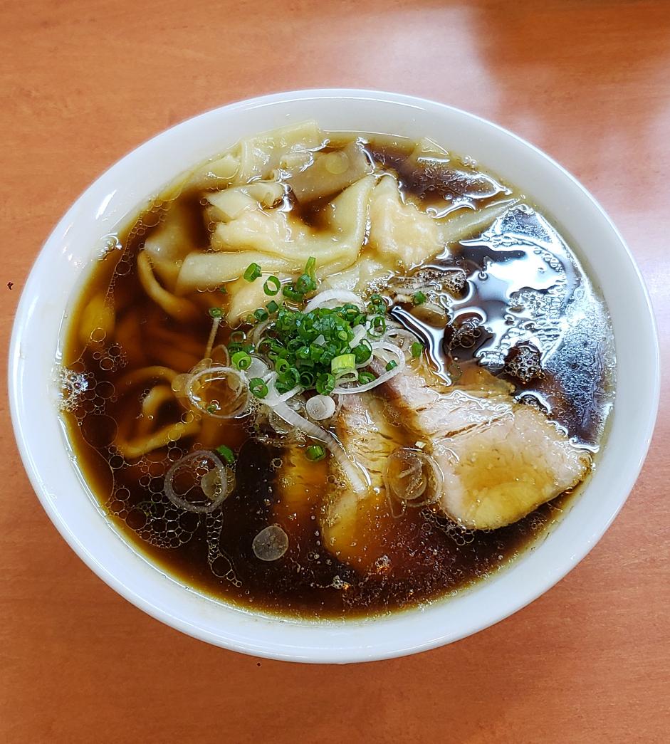 【ラーメン 日陰】江川町(南加瀬) 海老ワンタンメン+濃口 訪麺🍜醤油色煌やかな清湯soup!スッキリも芳醇な鶏出汁に吹き抜ける魚介の芳香…繊細に絡み合うはんなりコク深い味わいがじんわり浸透する珠玉の逸杯♪めッちゃウマ──ッ! 純手打ちのフワポフ極太麺&🦐雲呑もホロ🥩も格別🥰 超絶美味‼️🙏💥💯