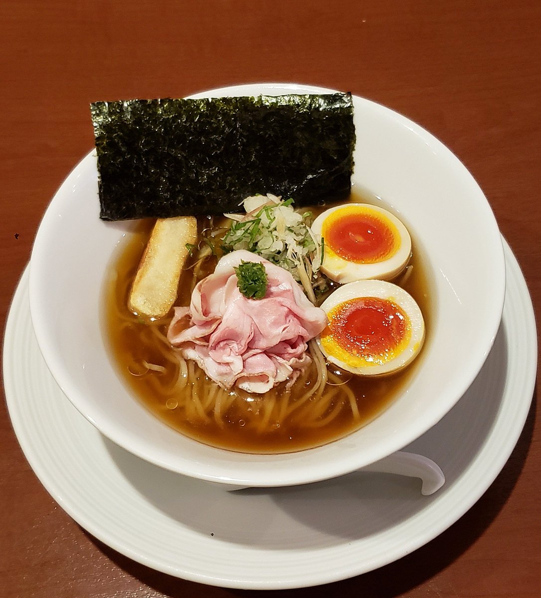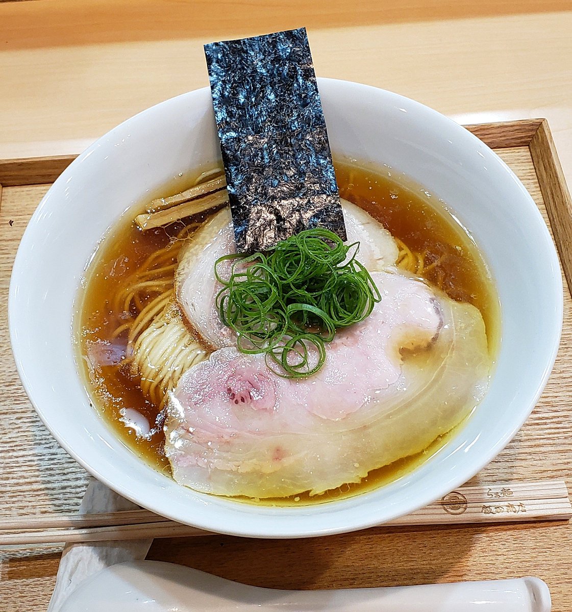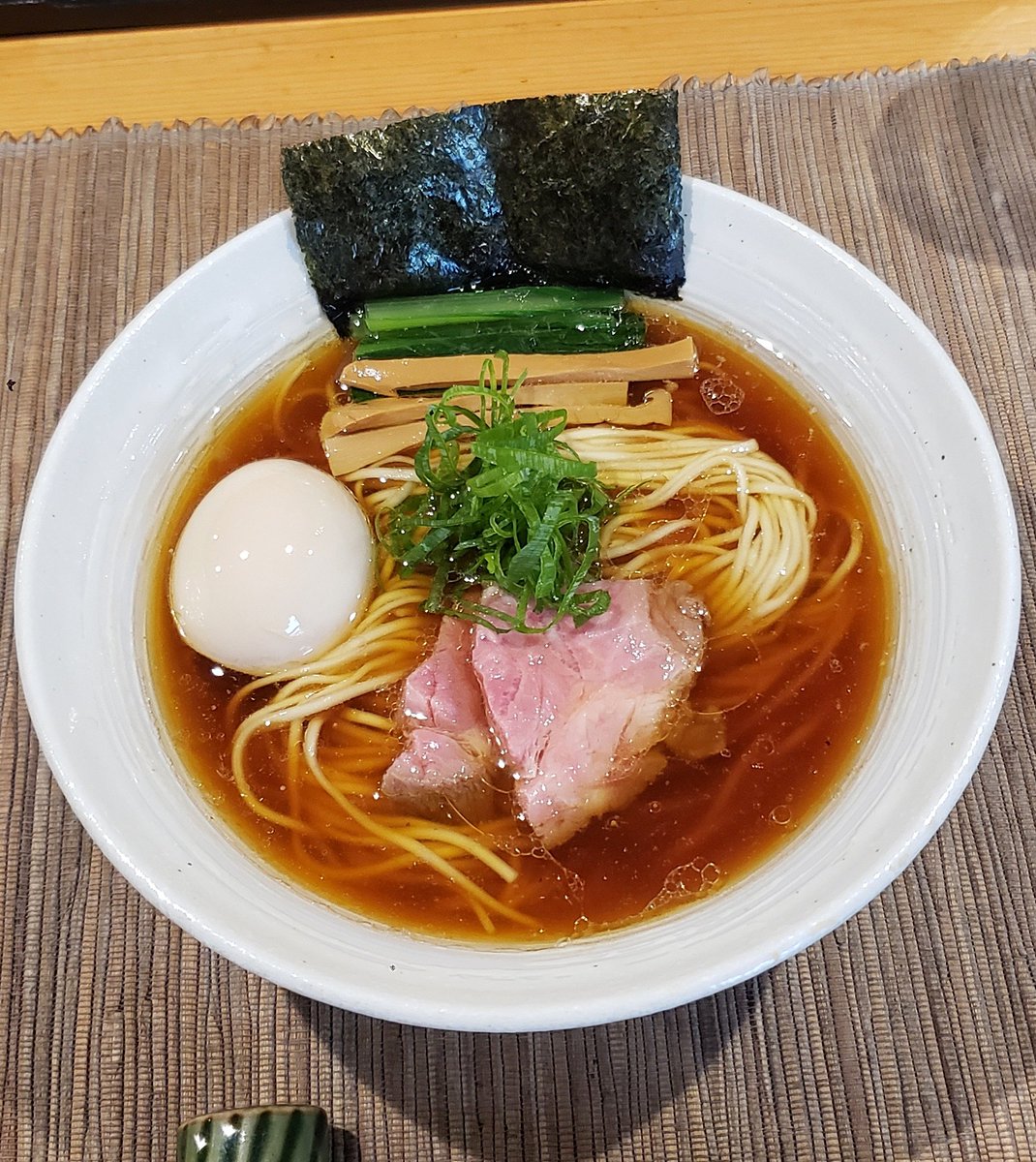 【はるちゃんラーメン】新橋 中華そば+はるたま 訪麺🍜清楚で色合いも美しい清湯soup!分厚く豊潤な豚出汁にスッキリ清らかな煮干の香り…啜る度に鼻腔を擽るビターで清涼な旨味が高い余韻をもたらす珠玉の逸杯♪めッちゃウマ──ッ!! 平打ちチュルピロ麺&滲む煮豚🥩もメンマも最高🥰 超絶美味‼️🙏💥💯