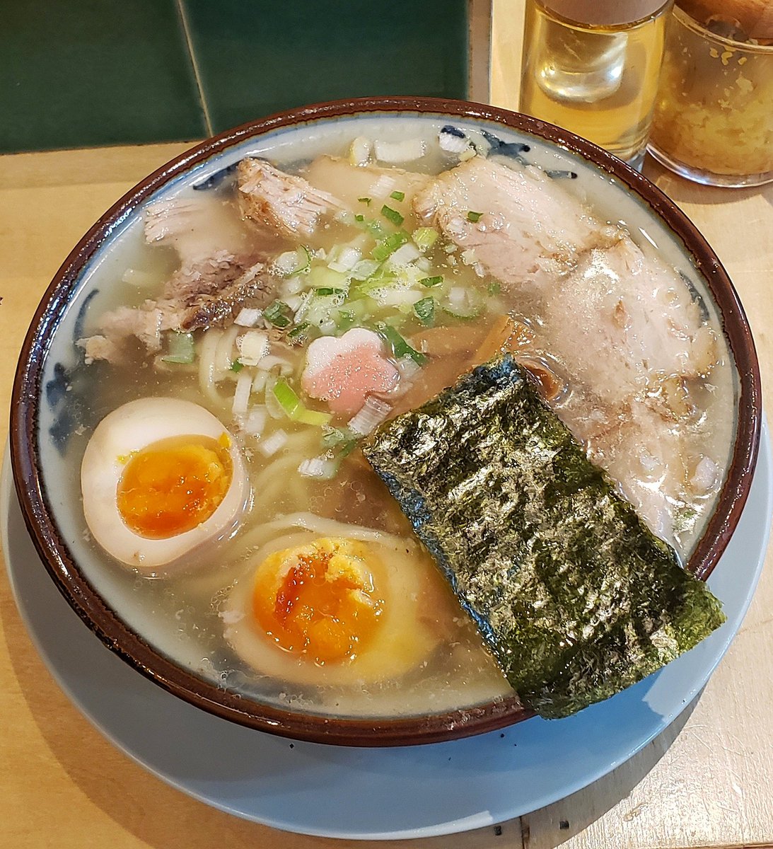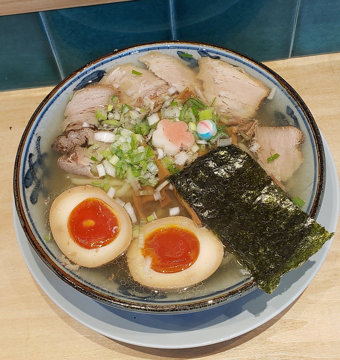 【はるちゃんラーメン】新橋 中華そば+はるたま 訪麺🍜華やかさにうっとりな清湯soup!厚みのある豚出汁にスッキリ清涼な煮干のflavor!はんなりで爽やかな奥深い味わいがじんわり沁みる珠玉の逸杯♪めッちゃウマ──ッ!! 平打ちの自家製チュルピロ麺&ホロリ煮豚🥩やコリメンも格別🥳 超絶美味‼️🙏💥💯