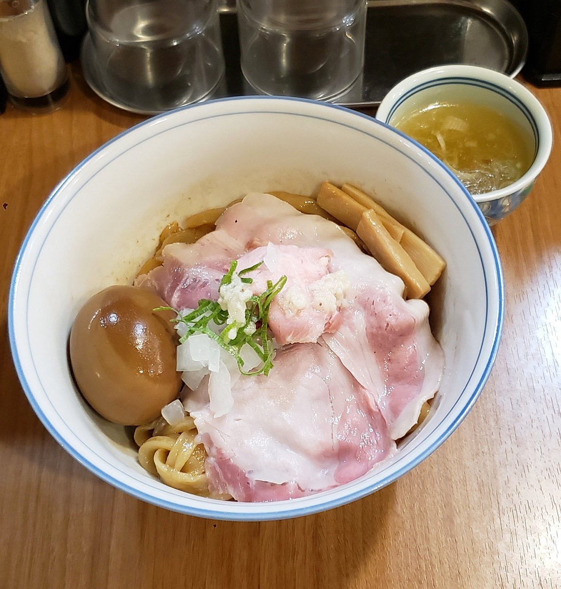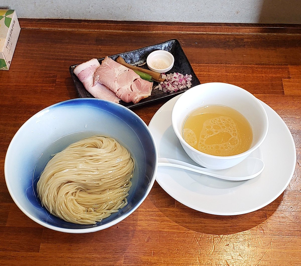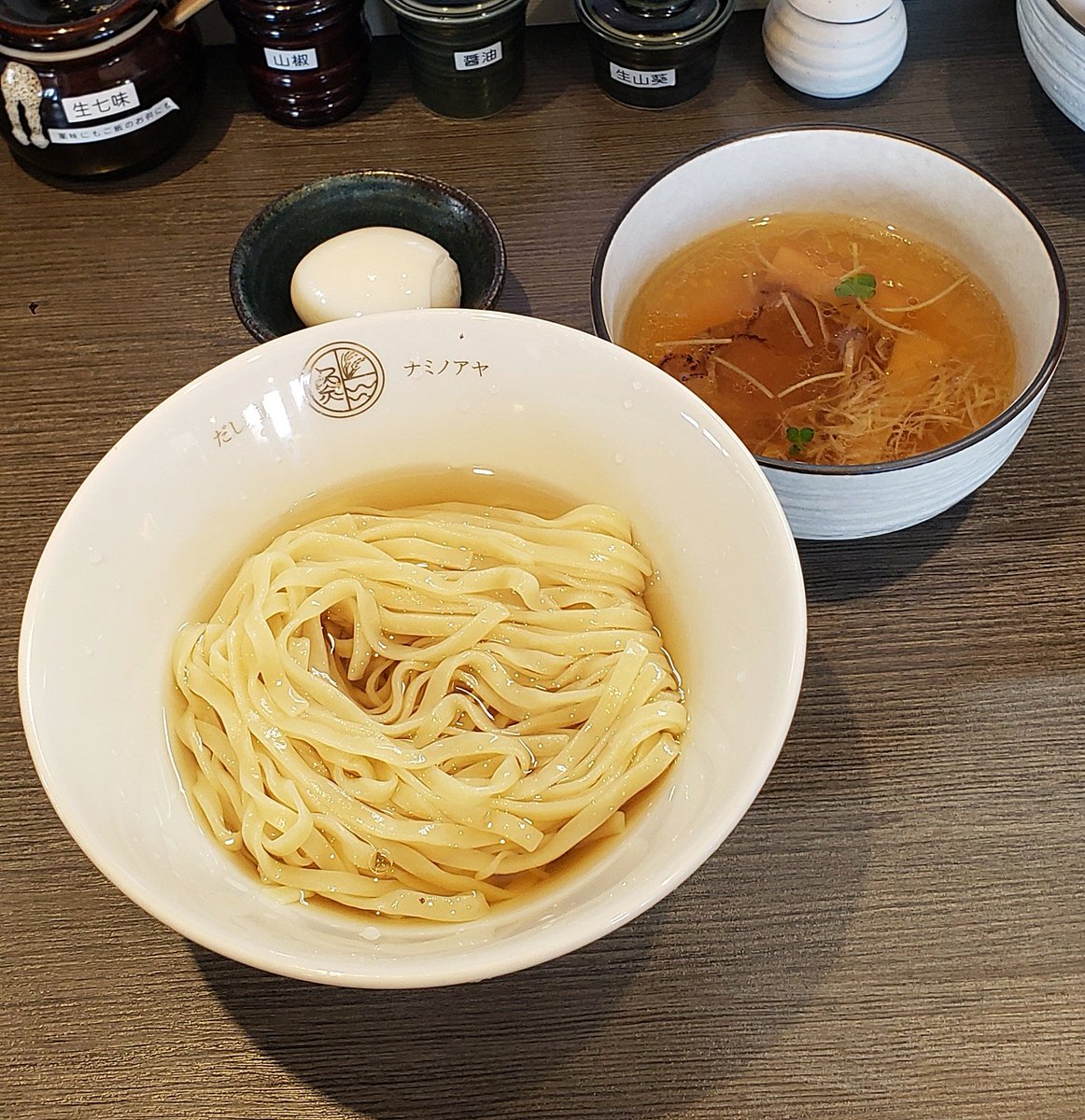 【だし麺屋 波ノあや】剛志 だしつけ麺 塩+味玉 訪麺🍜都内から解き放たれた淡麗soup!拘り出汁に浸る平打ちのチュルピロ麺を藻塩で…続いて海の幸が誇るつけ汁にdipすれば…琥珀色の豊潤で清楚な旨味を従えた抑揚ある味わいと溺れる余韻に舌鼓を打つ珠玉の逸杯♪めッちゃウマ──ッ! 超絶美味‼️🙏💥💯