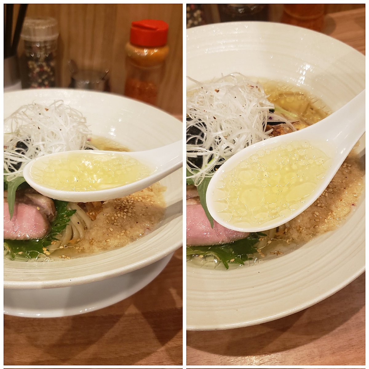 【中華そば みかわ】鶴見 限定 蛤と鰹の冷やしそば 訪麺🍜キンキン冷え冷えの清湯soup!ふんわり薫る蛤全開の旨味にそっと寄り添う鰹出汁…はんなり奥深い味わいと優しい余韻が五臓六腑に浸透する珠玉の逸杯♪めッちゃウマ──ッ!! パツザクの平打ち中細麺&3種の冷製🥩も丁寧で絶品🤩 超絶美味‼️🙏💥💯
