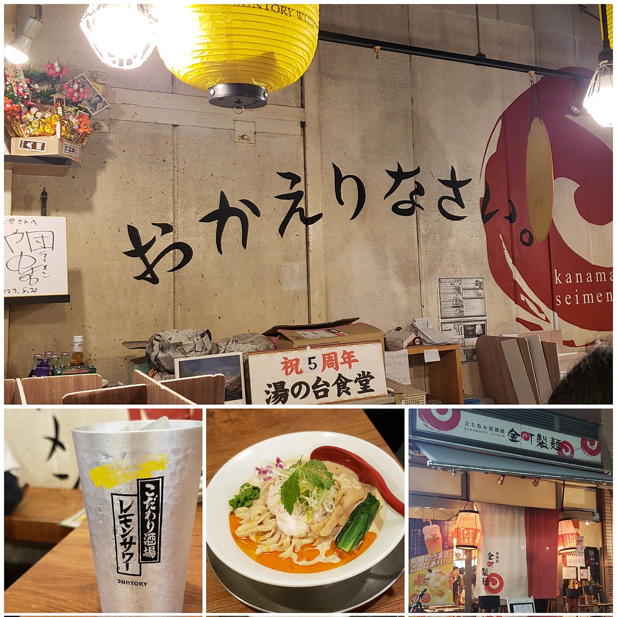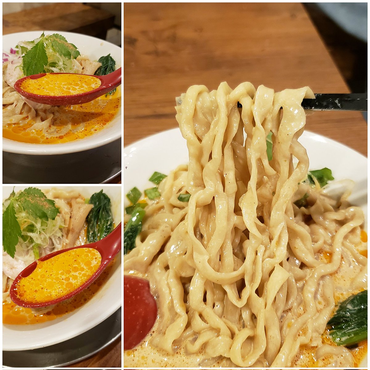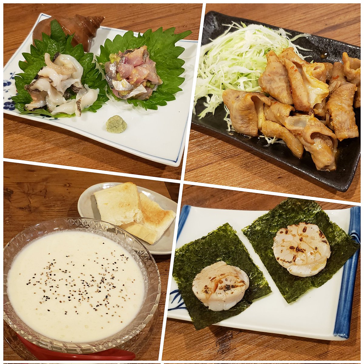 金町製麺@金町 ・冷やし胡麻担担 ・活けツブ貝の刺身 ・瀬つきアジのなめろう ・生帆立の炙り 海苔付き ・豚ホルモンのピリ辛味噌炒め ・インカのひとみの冷製ビシソワーズ 落ち着く空間で絶品料理に始まり〆はピリ辛円やかな冷製スープにワシピロ暴れ麺が最高な珠玉の逸杯😋 店長と皆様に感謝です🙇💕