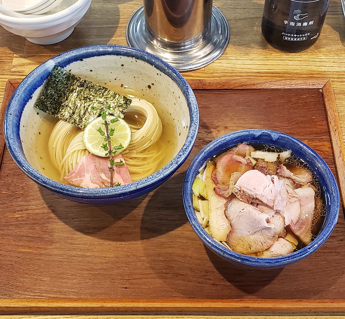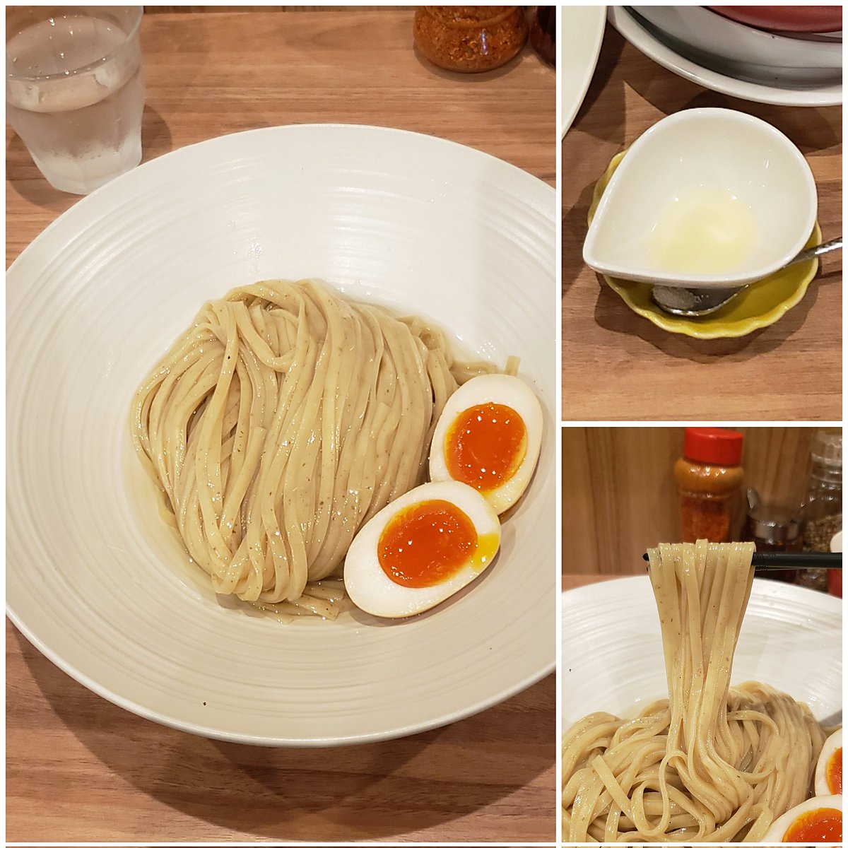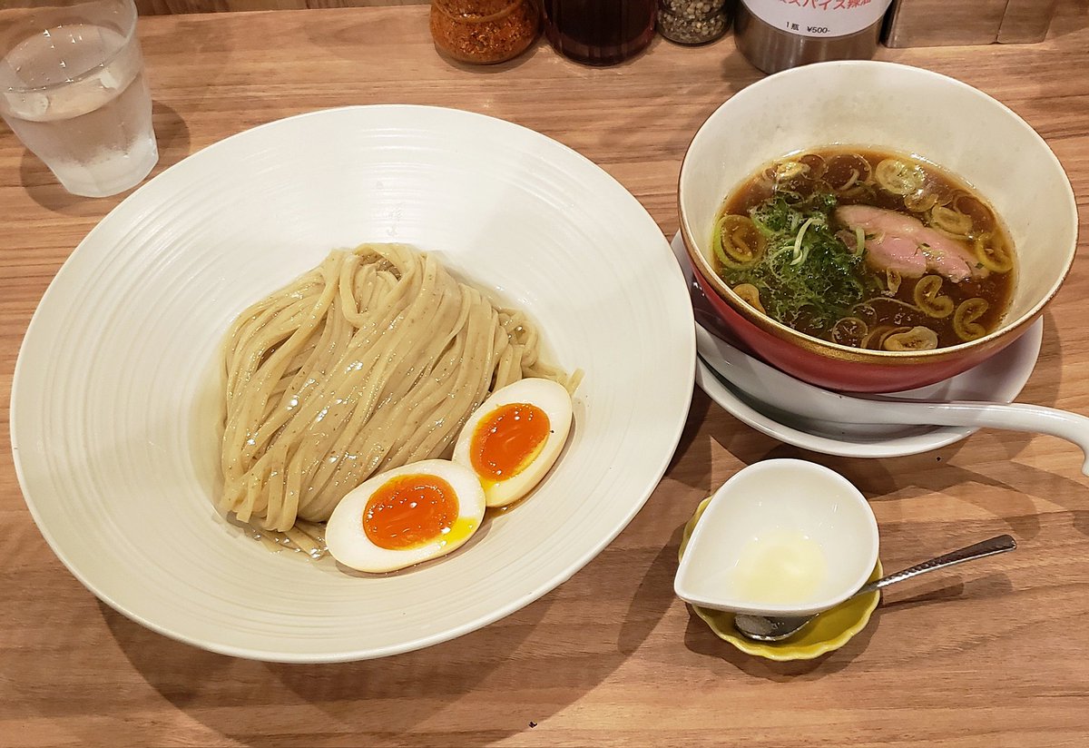 【麺処 ほん田】秋葉原本店 味玉醤油つけ 訪麺🍜濃密な昆布水を纏う風味抜群の平打ち麺を藻塩や柑橘で堪能!複雑に出汁重なる芳醇なつけ汁にdipすれば…力強い醤油感と繊細で多層な旨味!動物系と魚貝の織り成すコク深い味わいと高い余韻に恍惚とする珠玉の逸杯♪めッちゃウマ──ッ! 超絶美味‼️🙏💥💯