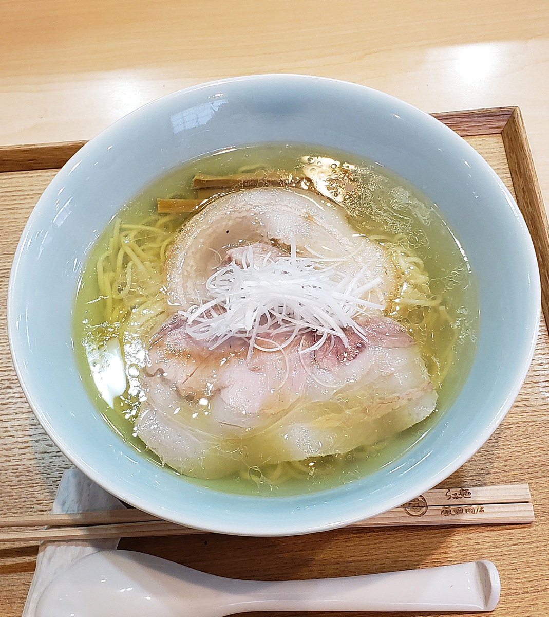 【らぁ麺 飯田商店】湯河原 しおらぁ麺 訪麺🍜14年目も麗しく気高い淡麗soup!丸みある動物系の旨味に優しくもスッキリな塩味…はんなりで豊潤な味わいとうっとりする孤高の余韻に酔いしれる珠玉の逸杯♪めッちゃウマ──ッ!! 妖艶で滑らかなツルモチの中細麺&天城黒豚の甘味が絶品🤩 超絶美味‼️🙏💥💯