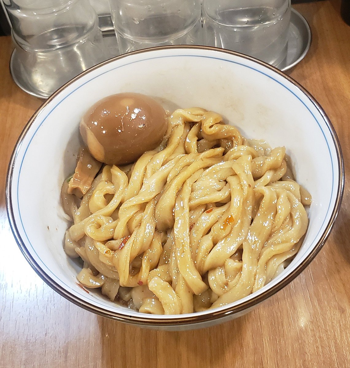 【煮干中華ソバ イチカワ】つくば市天久保 汁ナシ(白正油)+和え玉+生卵 聖地巡礼⛩️Oily且つ孤高の香り際立つ汁ナシ!煮干が醸す香味と自家製辣油の辛味が追い重なり…多奏な旨味と超強い余韻が鼻腔に澱む事を許さず突き抜ける珠玉の逸杯♪めッちゃウマ──ッ! 薫香なレア🥩も超絶品🤩 超絶美味‼️🙏💥💯