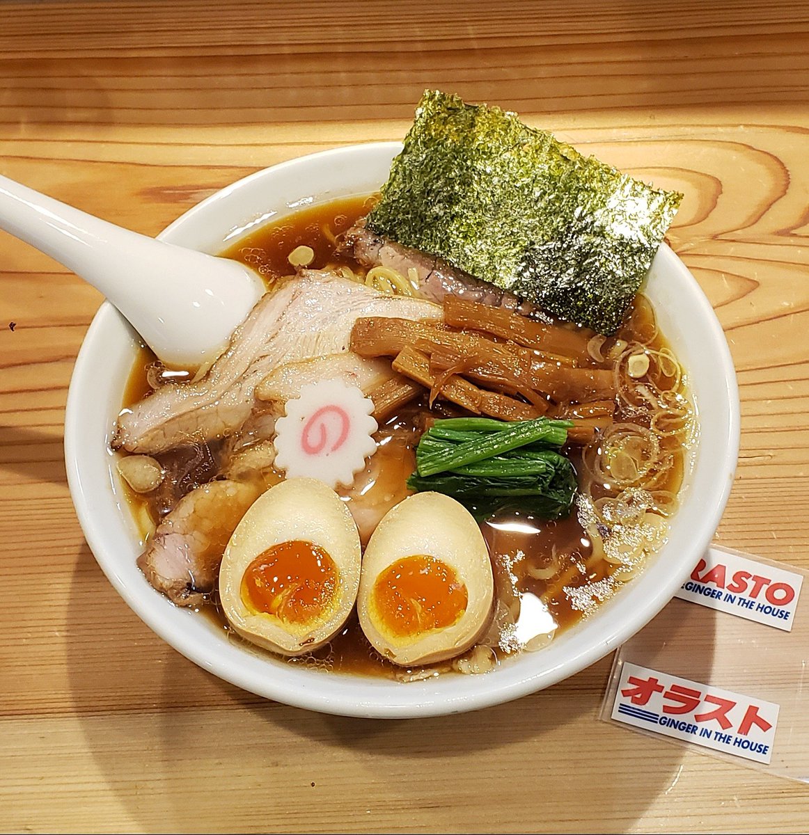 【オランダ軒】東岩槻 しょうゆラーメン+味玉W 入国🇳🇱今年一番の暑さを癒す中汁ginger!豊潤でやや煮詰まった動物系に颯爽と吹き抜ける生姜のflavor!円やかでコク深い味わいに爽快な稲妻が走り刺激的で至高の余韻をもたらす珠玉の逸杯♪めッちゃウマ──ッ!! 山さん姐さんAZMS🙇‍♂️ 超〰️超絶美味‼️🙏💥💯