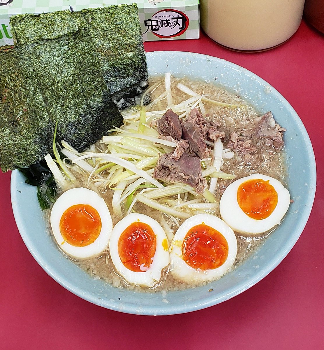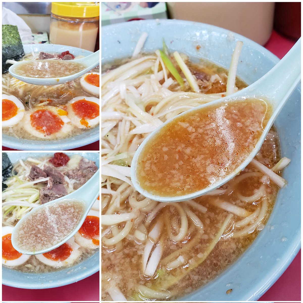 【ラーメンショップ】牛久結束店 ネギラーメン 太麺+味付玉子W+小ネギ丼 訪麺🍜とろ~りまったりな豚骨soup!豊潤な豚出汁にチャッチャと降り注ぐ円やかな背脂…Wildでコク深い味わいと葱の香味で食を掻き立てる珠玉の逸杯♪めッちゃウマ──ッ!! 自家製のツルモチ中太麺が相性抜群🤩 超絶美味‼️🙏💥💯