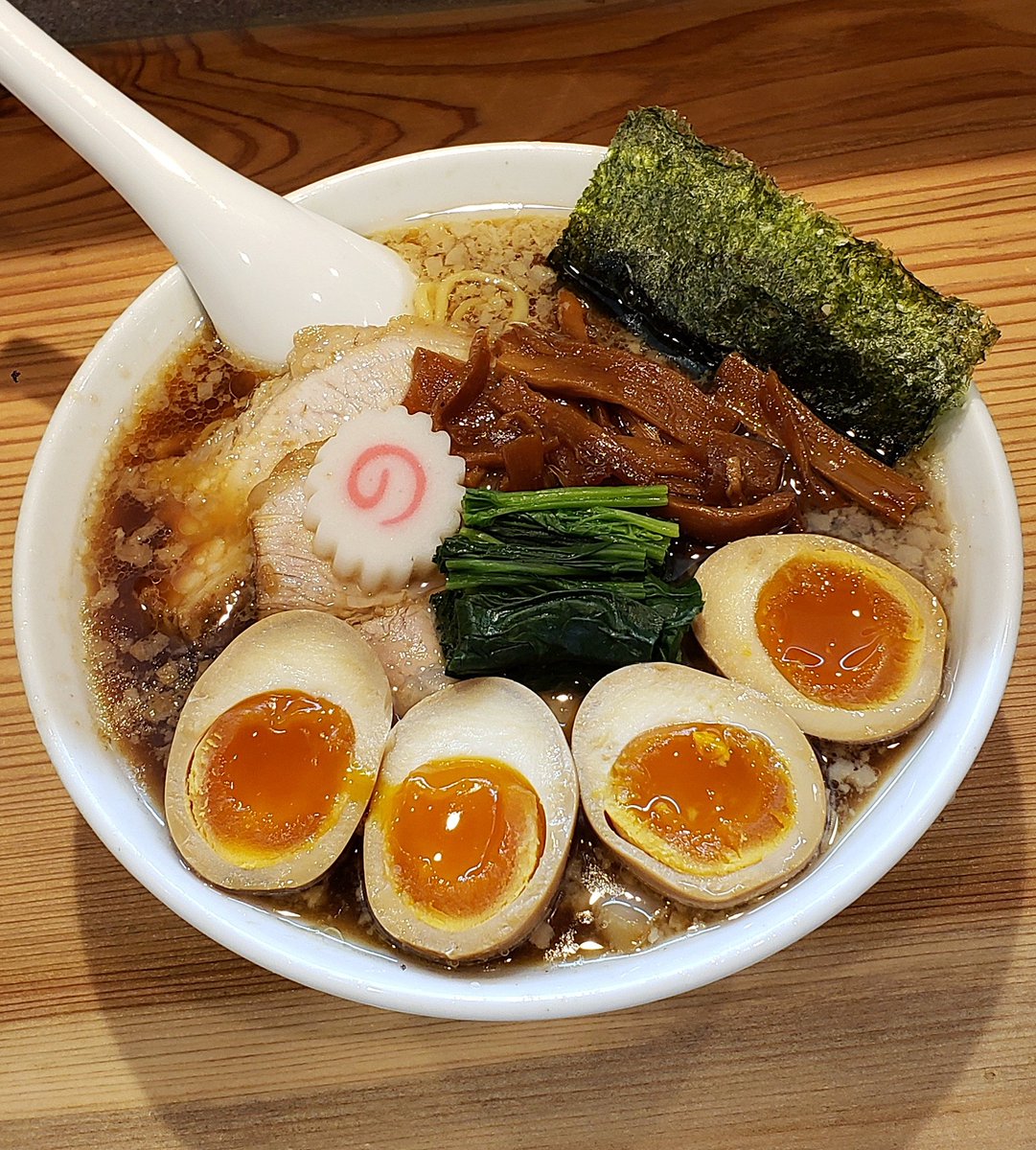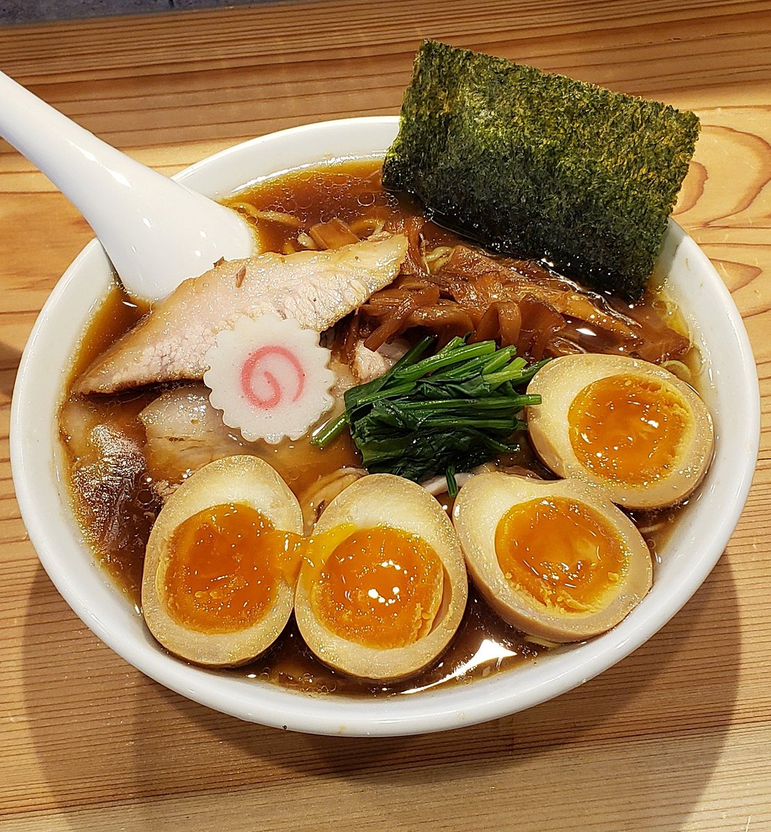 【オランダ軒】東岩槻 しょうゆラーメン+味玉W 訪蘭🇳🇱肉の日に滑り込みの中汁ginger!どっしり豊潤な豚鶏出汁に甘味とコクの雪が舞う奇跡!ほんのり生姜薫る重厚で奥深い味わいと高い余韻が怒涛の様に押し寄せる珠玉の逸杯♪めッちゃウマ──ッ!! 山さん姐さん👴さん皆様に感謝🙇‍♂️ 超〰️超絶美味‼️🙏💥💯