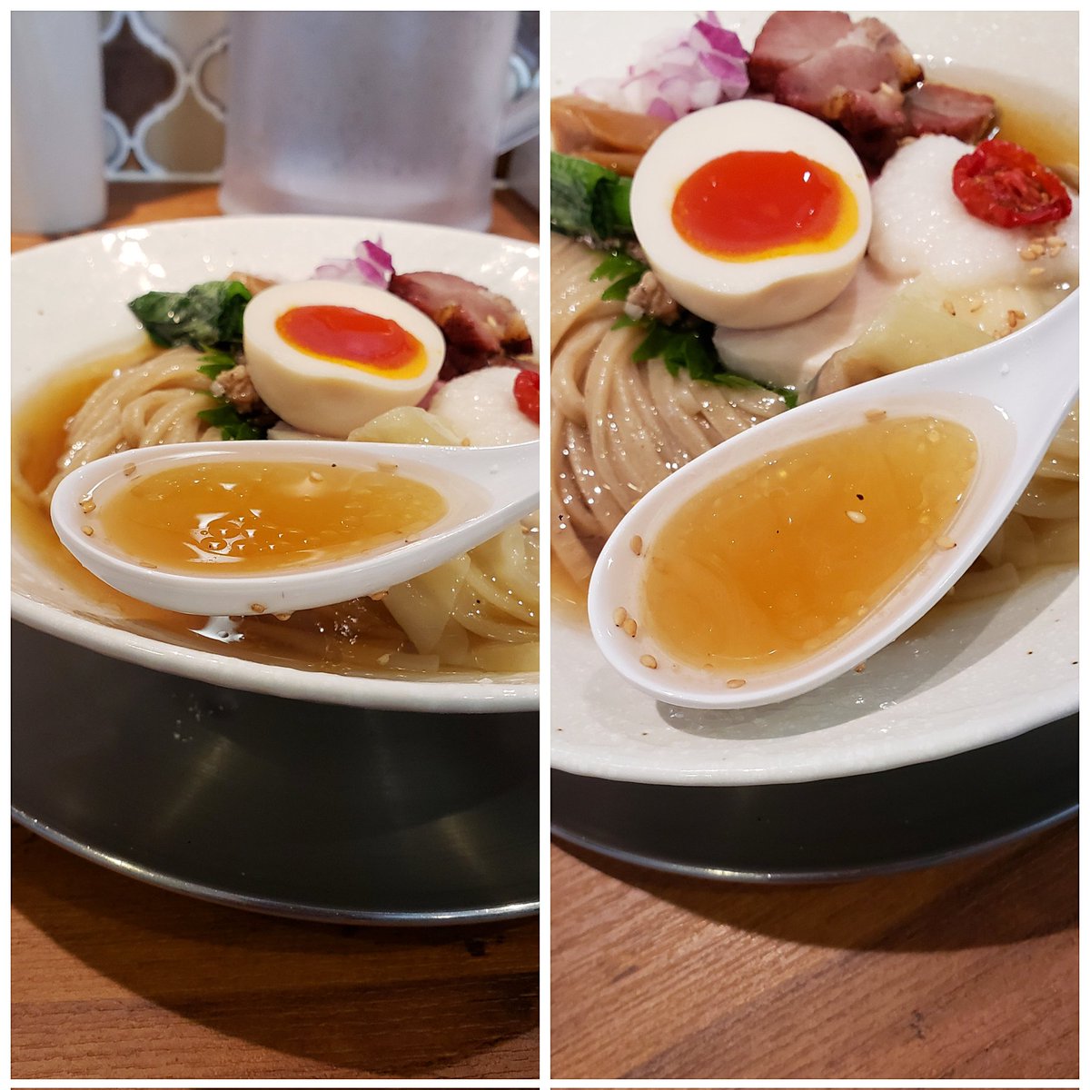 【麺屋 さくら井】三鷹 味玉醤油らぁ麺 訪麺🍜つけ&夏季限定でお久な清湯soup!端正で清らかな鶏出汁に優しく寄り添う魚介の芳香…繊細な醤油感と複雑に重なる奥深い味わいが華麗な余韻をもたらす珠玉の逸杯♪めッちゃウマ──ッ! 熱々パツパツの中細麺&しっとり桃色のレア🥩も格別🤩 超絶美味‼️🙏💥💯