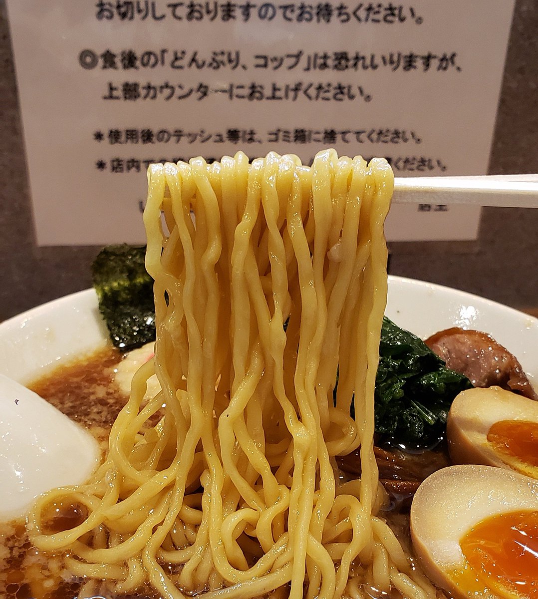 【ラーメン 日陰】江川町(南加瀬) 海老ワンタンメン+濃口 訪麺🍜醤油色煌やかな清湯soup!スッキリも芳醇な鶏出汁に吹き抜ける魚介の芳香…繊細に絡み合うはんなりコク深い味わいがじんわり浸透する珠玉の逸杯♪めッちゃウマ──ッ! 純手打ちのフワポフ極太麺&🦐雲呑もホロ🥩も格別🥰 超絶美味‼️🙏💥💯