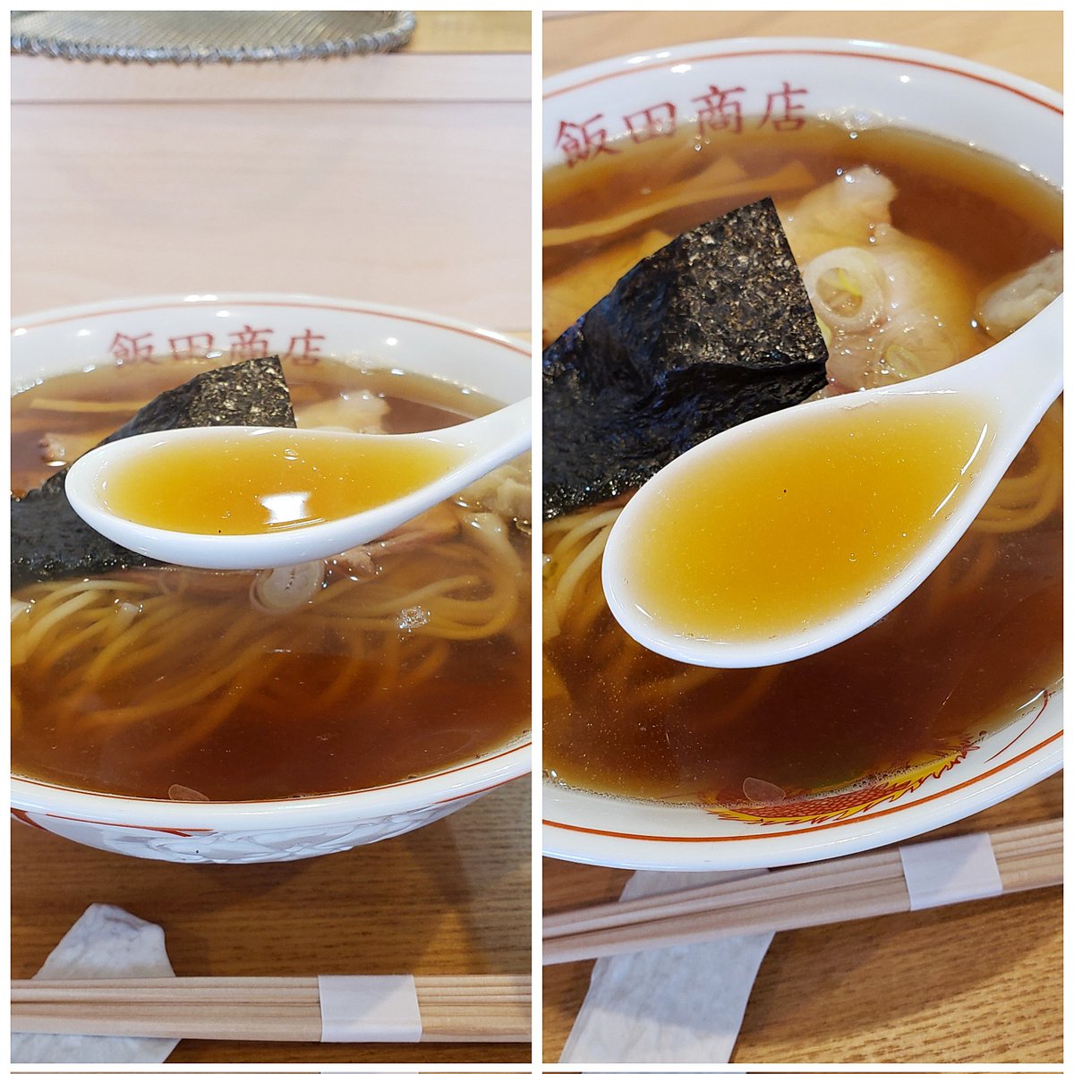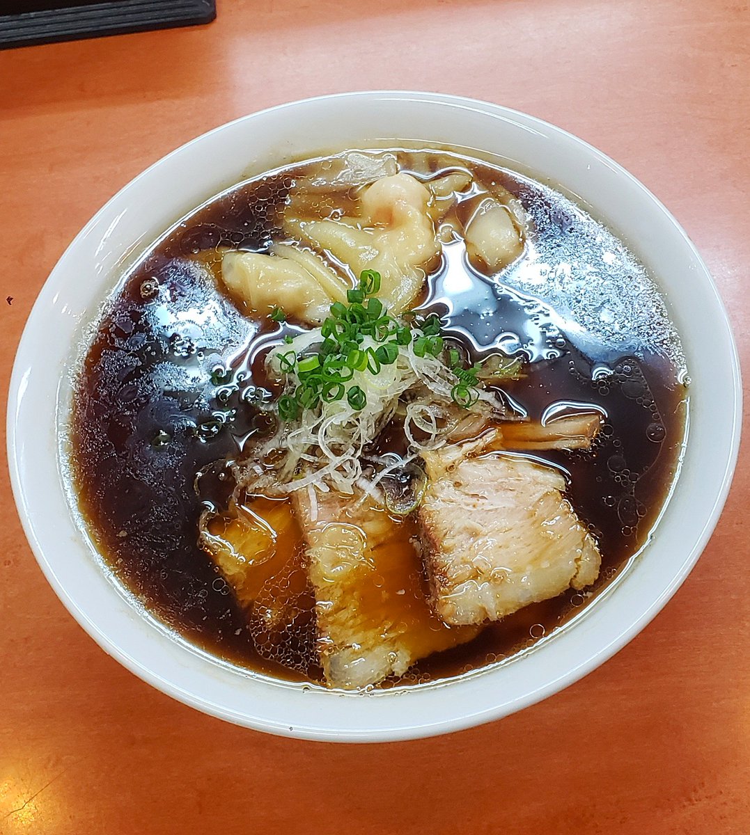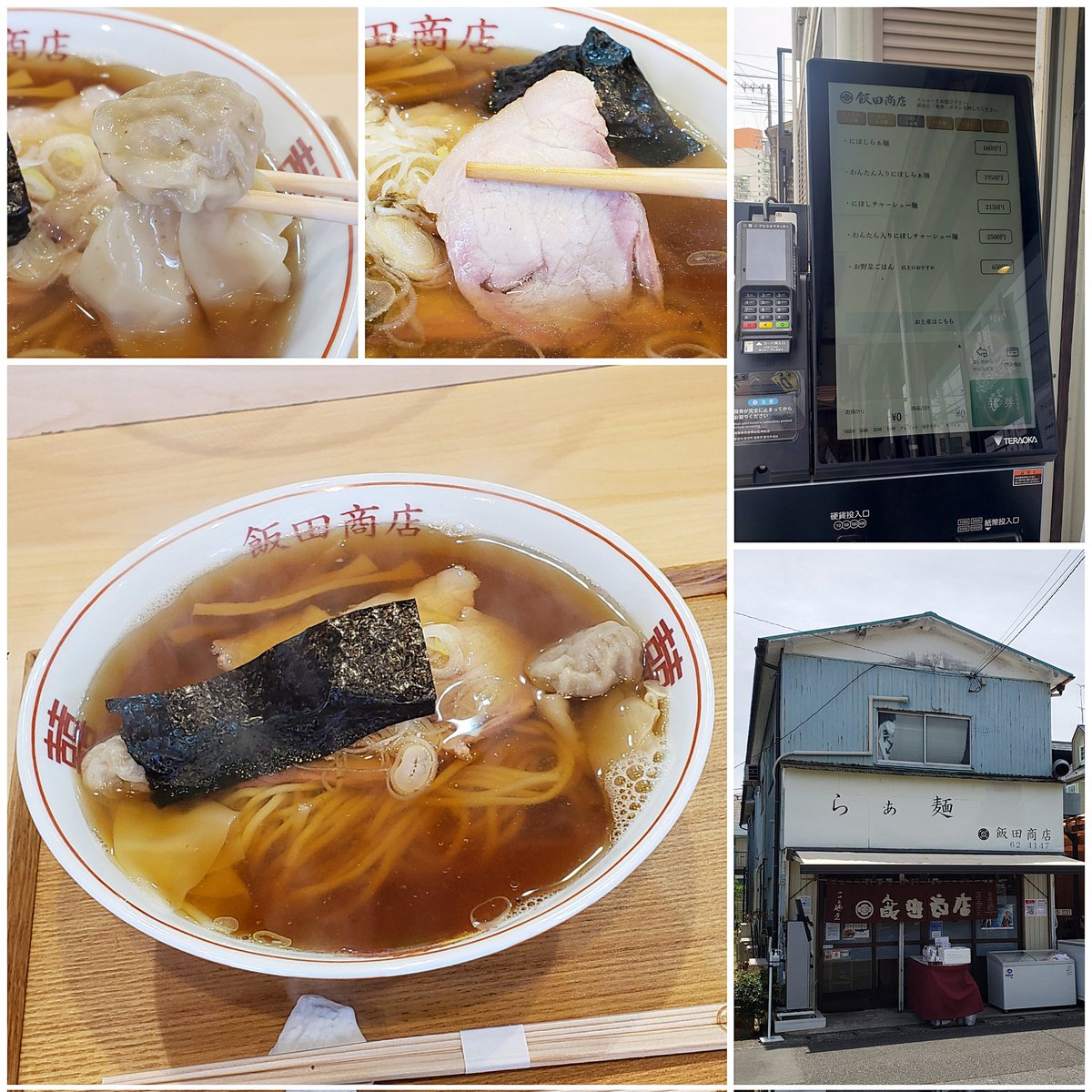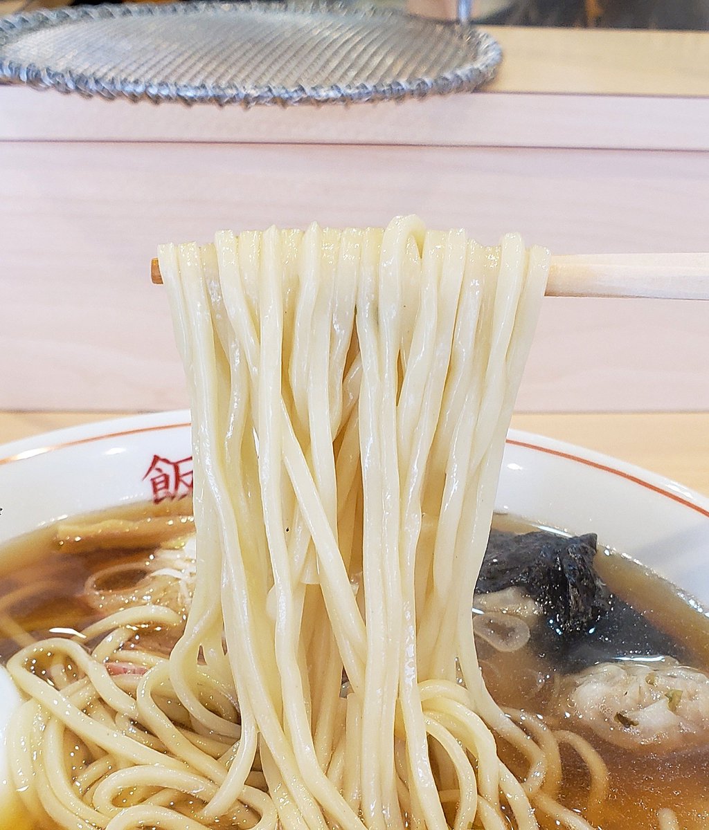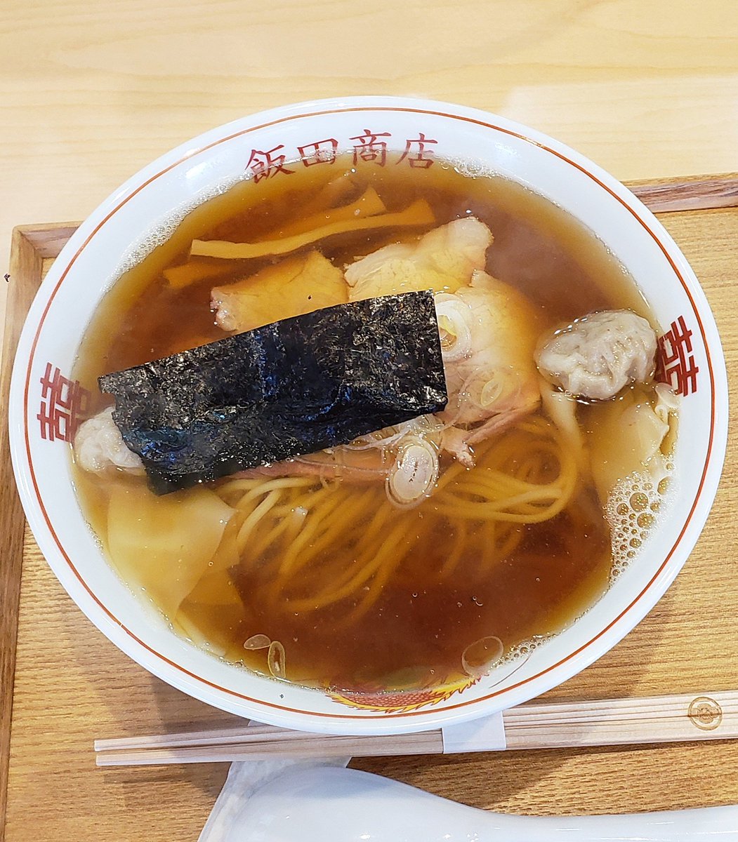 【らぁ麺 飯田商店】湯河原 わんたん入りにぼしらぁ麺 訪麺🍜遂に解禁の待ちに待った清湯soup!雑味のない仄かな苦味…煮干directな忖度のない想いを感じるnostalgicな味わいがじんわり浸透する珠玉の逸杯♪めッちゃウマ──ッ! 喉ごし抜群なツルツルの中太麺&薫香🥩がどストライク🤩 超絶美味‼️🙏💥💯
