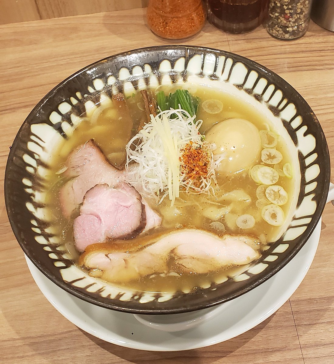 【麺処 ほん田】秋葉原本店 味玉塩+もち姫手揉み麺変更 訪麺🍜清楚とwildが共存する清湯soup!重厚な動物系と清涼に華咲く魚貝の香り…複雑に重なる強靭な旨味と口腔を掻き立てる奥深い味わいが沁み~る珠玉の逸杯♪めッちゃウマ──ッ! 熱込めたフワモチの手揉み麺&薫香な🥩も絶品🤩 超絶美味‼️🙏💥💯