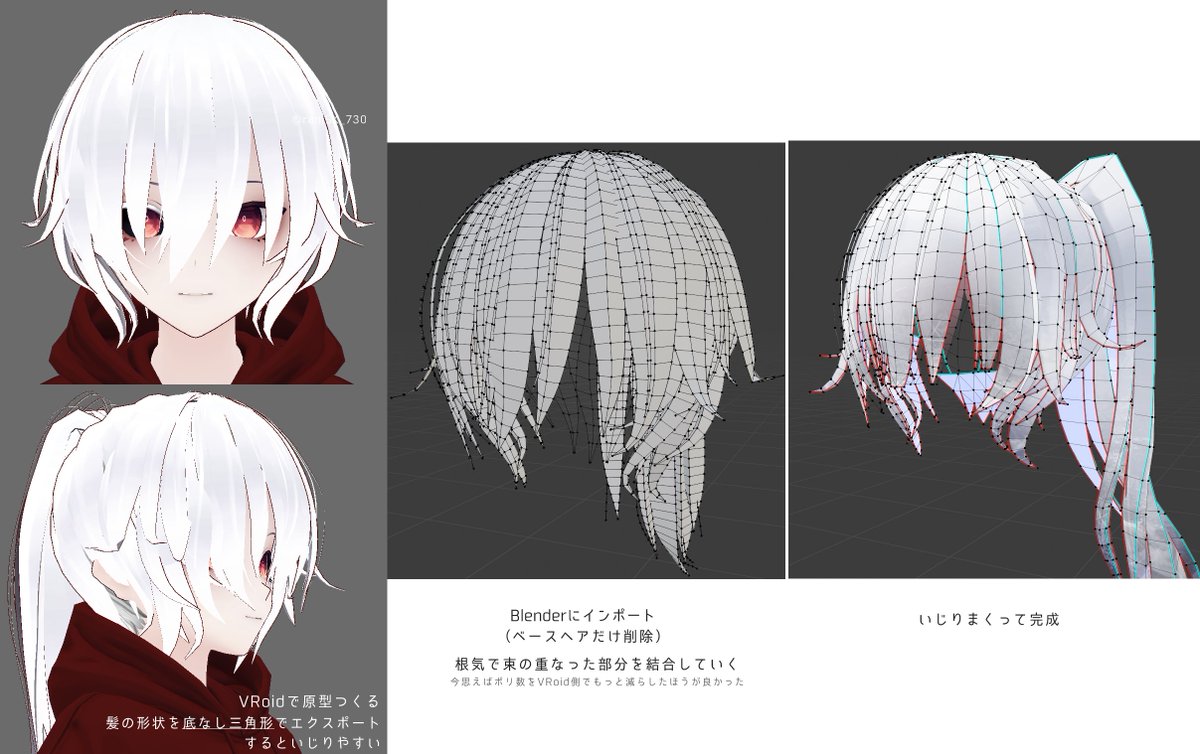 前に言ってた自己流髪モデリングの動画できました