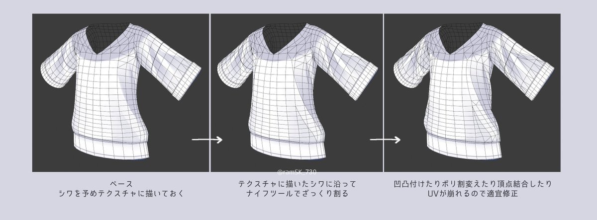 あまりにもゴリ押しすぎるので迷ってたけどせっかくなので上げておく… ゴリ押し脳筋シワモデリングメモ twitter.com/ramSK_730/stat…