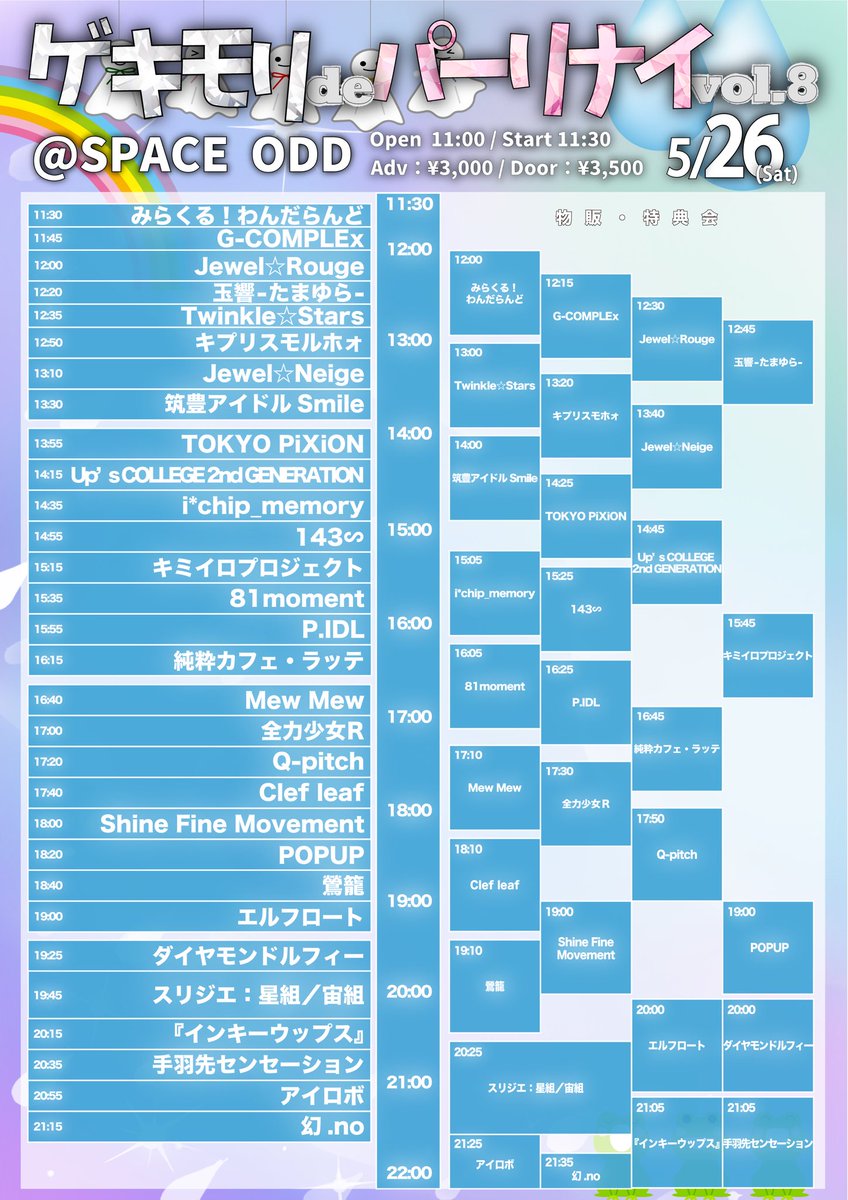 ※特典会の詳しい詳細は当日、会場内に貼り出しとなります。