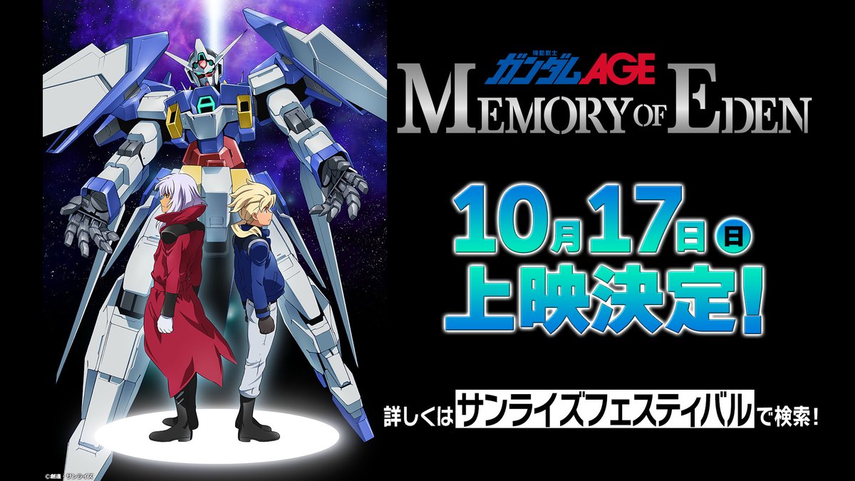 「MEMORY OF EDEN」情報。先ほどバンダイチャンネルにて無料ライブ配信した冒頭24分の映像は公式HPの方でご覧になれます。よろしくお願いします。(制作P)gundam-age.net #g_age