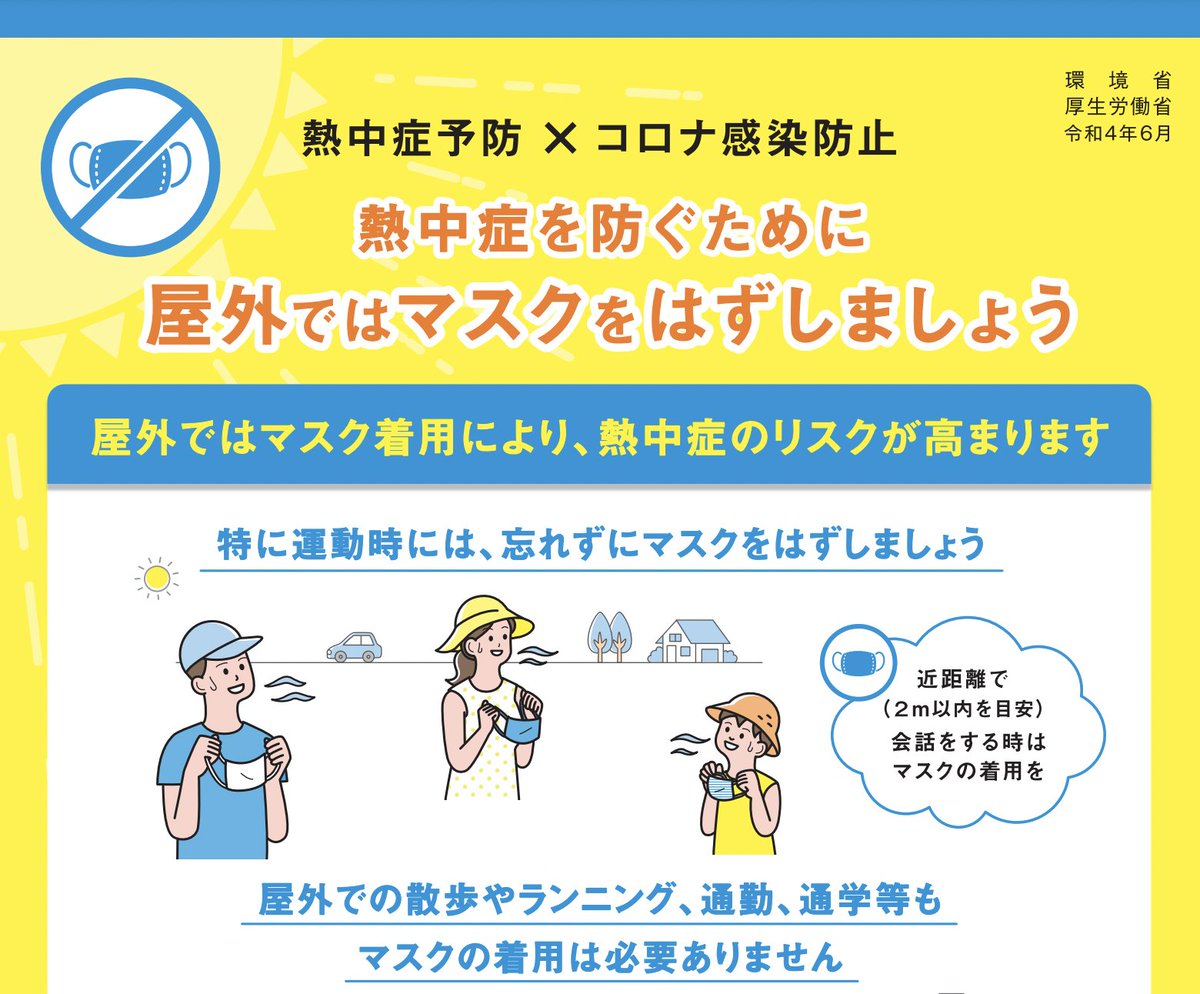 厚労省が「熱中症リスクが高まるので、外しましょう」と言ってるよ。