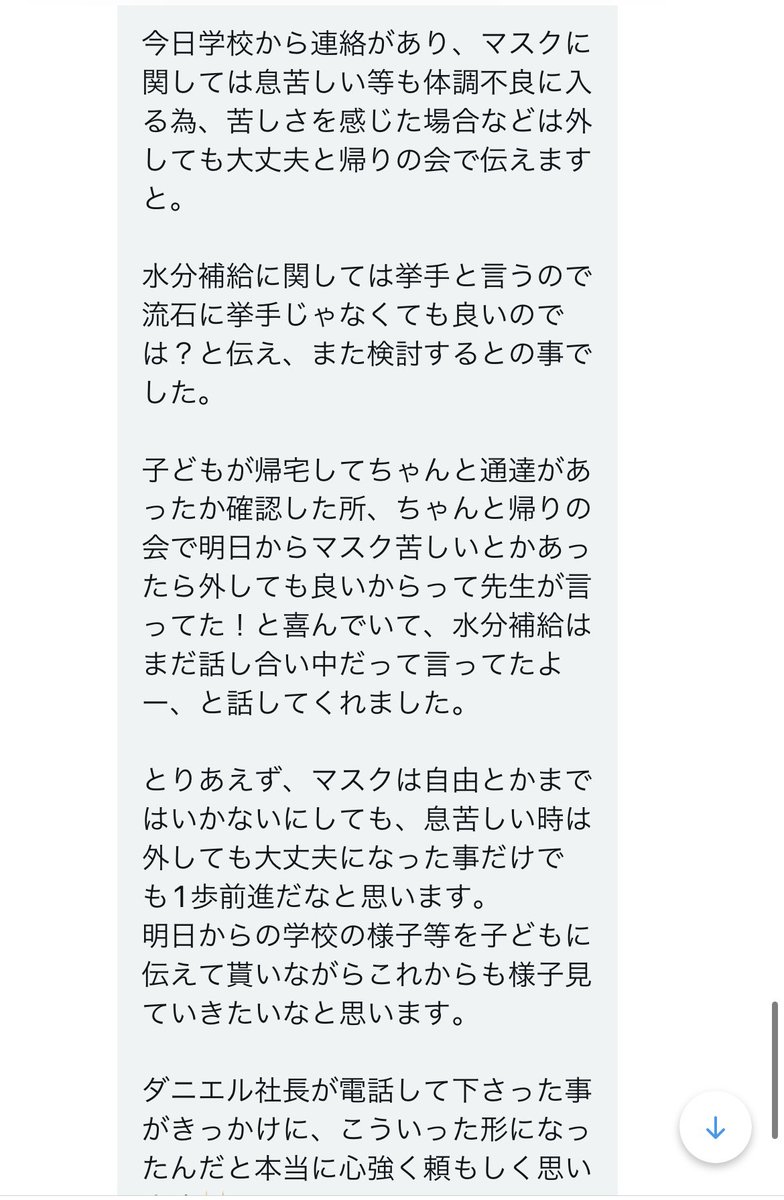 「熱中症もあるからウチでは外でマスク外して良いって言ってます」