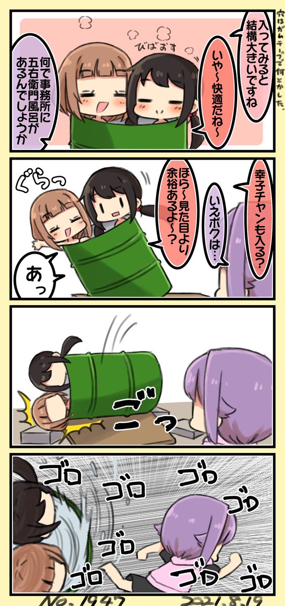 五右衛門風呂に入る中野と柚 #よなかの