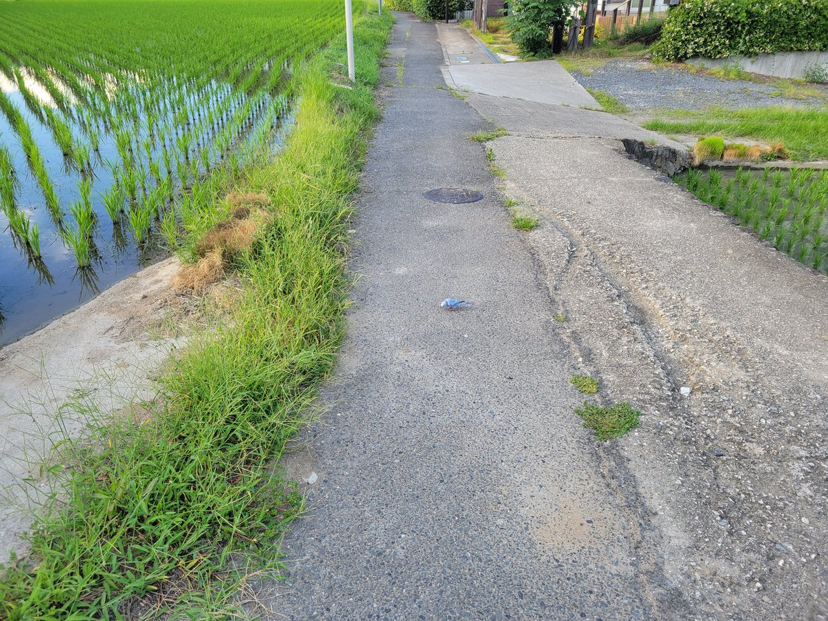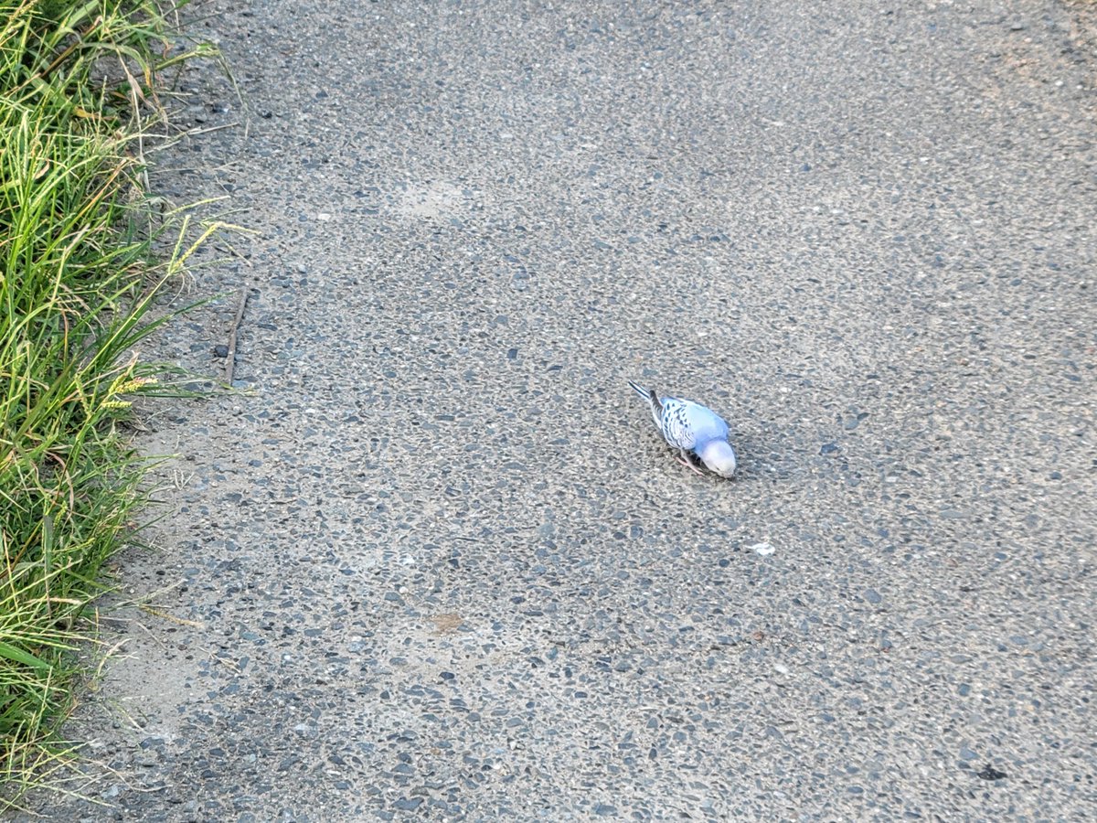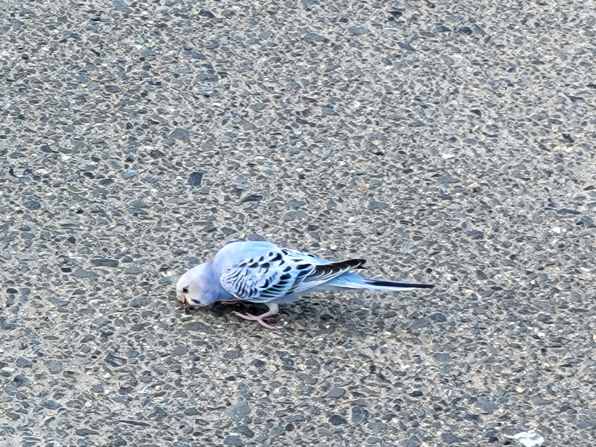 なんか……なんかインコが道端で拾い食いしてる……??