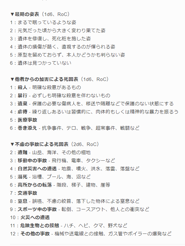 自キャラを未亡人とかやもめとか親なし子にしがちなので、死因の設定をざっくり決められるランダム表を作りました。TRPGや創作界隈に需要がある気がするので放流します。 privatter.net/p/8070453