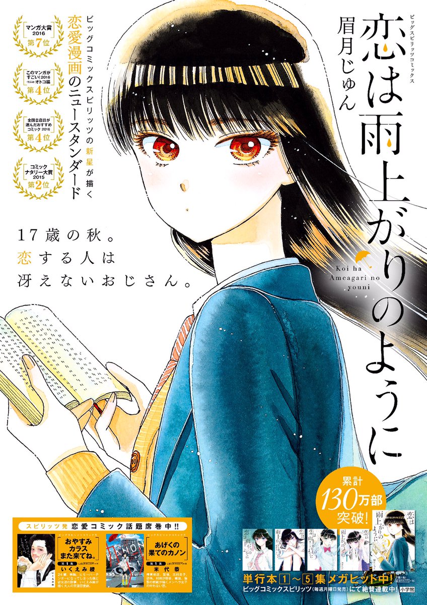 本日は『恋は雨上がりのように』第6集発売日です!電子も同時に配信中!試し読みもございます!↓宜しくお願い致します(◍ ´ ꒳ ` ◍)/ twitter.com/comic_bc/statu…