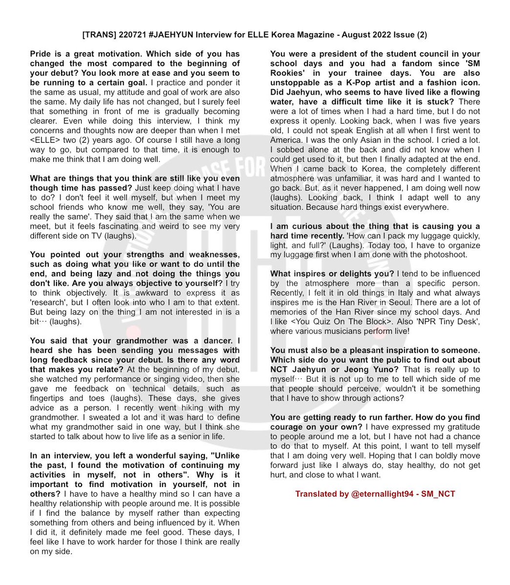 [TRANS] 220721 #JAEHYUN Interview for ELLE Korea Magazine - August 2022 Issue (2)