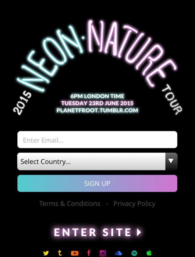 Just about to get on Tumblr to talk #NEONNATURE. The US tour is the 1st leg. UK + European dates coming July 6th! 🍋