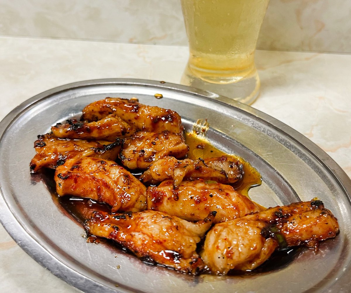 名物ミノサンドは絶妙な焼き加減で口の中で脂がとろける〜〜!美味しくって焼酎ハイボールが止まらない。