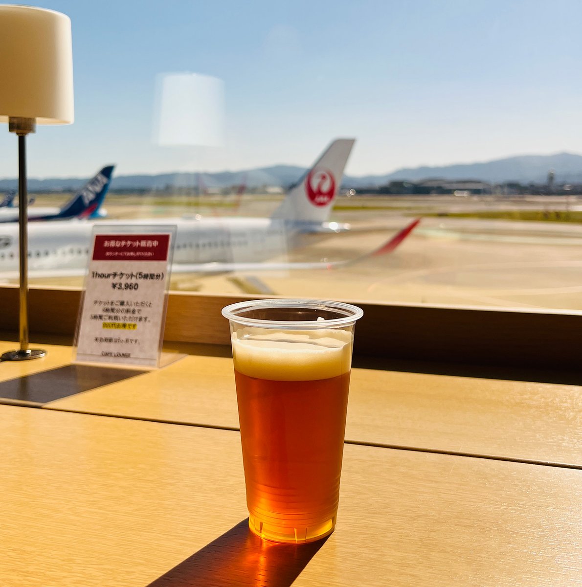 飛行機を望める最高のロケーションの中、30分825円でお酒飲み放題&スナックやパンなどの食べ放題が楽しめる福岡空港の楽園。雑誌も試し読みできるしWi-Fi&コンセント完備。福岡空港でのちょっと一杯におすすめ。