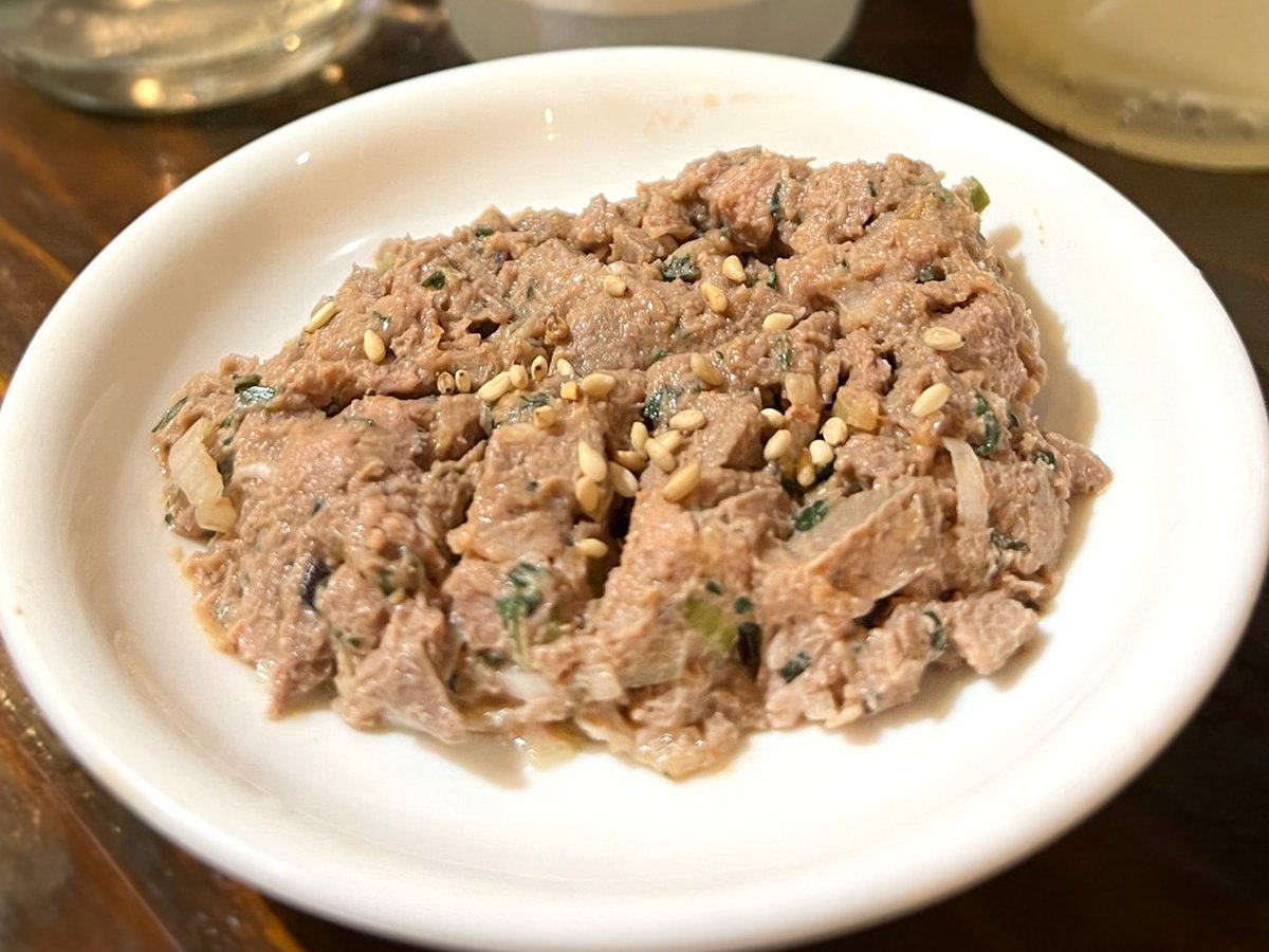 今月オープンしたばかりのホルモン焼き居酒屋で、朝挽きの新鮮ホルモンが鉄板焼きや肉刺しで気軽に楽しめる。名物のミックスホルモン(税込418円)はやみつきになる美味しさ。特にフワの鮮度に感激した。