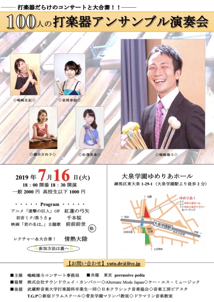 なぜかちょっとバズってるのでTwitter法に従い宣伝させていただきます打楽器の演奏家してます嶋崎雄斗です。