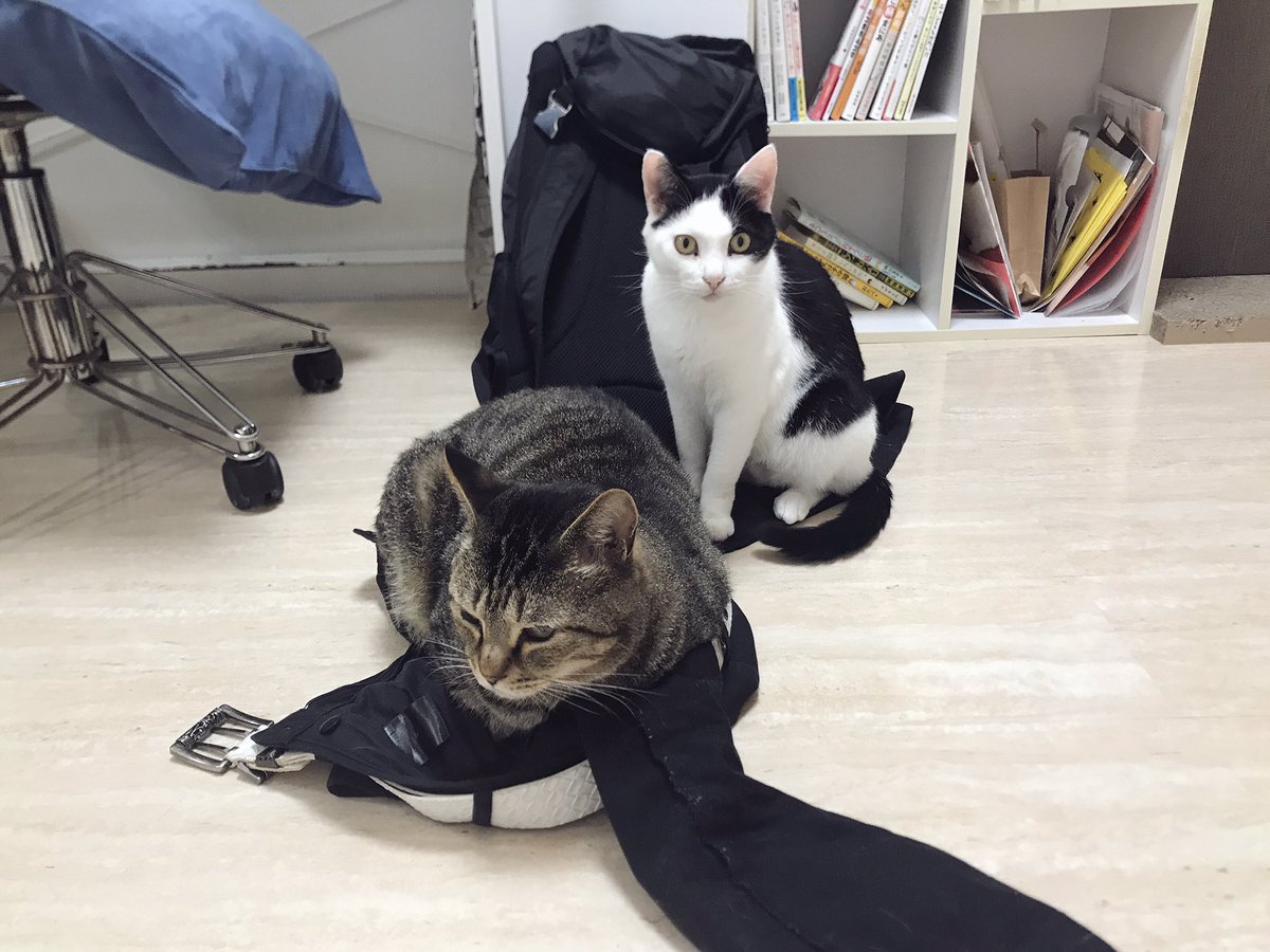 外出中にwebカメラで猫達の様子を見たら、寝る場所のポジション争い真っ最中でした😂