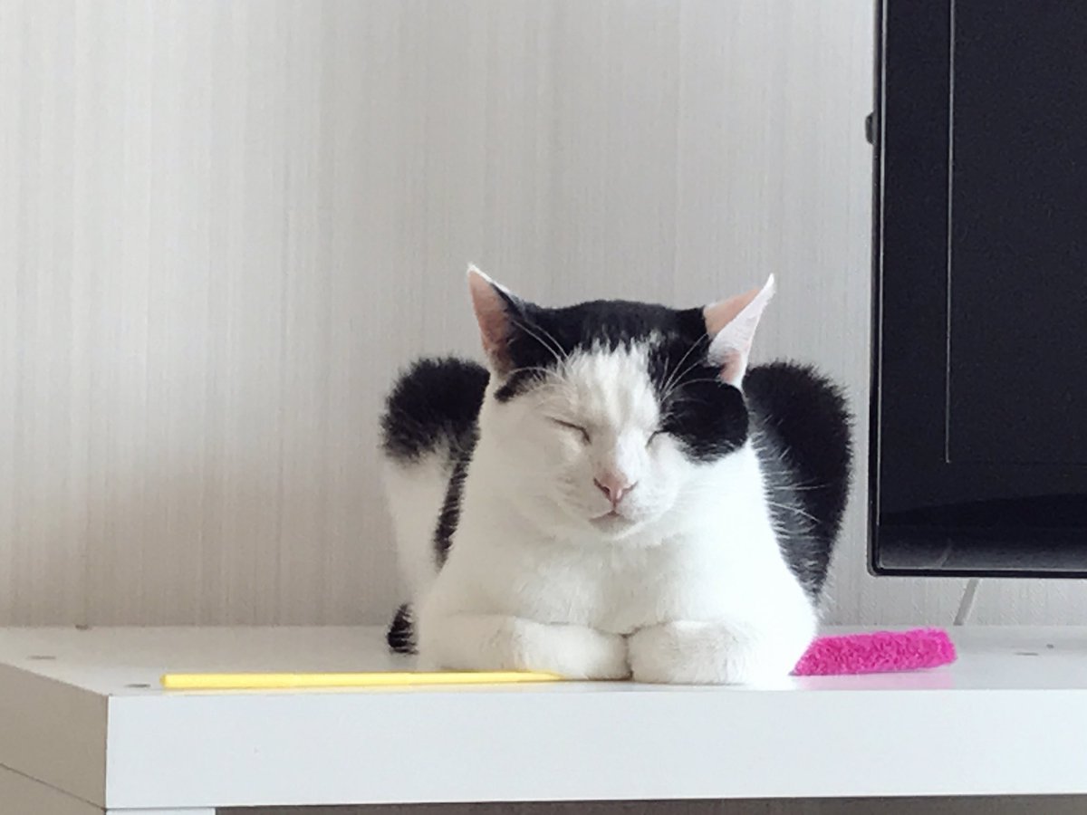 って聞いたから、テレビの両脇に猫を追加したら、さらに癒されることが証明されました