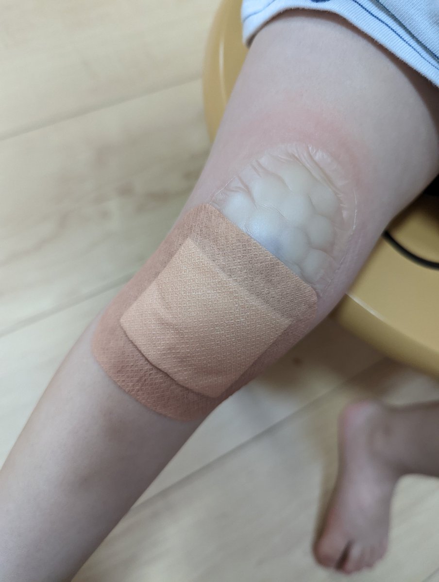 これは子供が怪我したときに使える育児ライフハック()なんやけど、よく動くから高級絆創膏(キズパワーパッドとか)剥がれがちやん?でも上から隠れるように一回り大きくケアリーブ貼ってたら剥がれてもケアリーブだけ交換するだけで済むやで。しかもケアリーブのほうが剥がれにくいから良く保つやで
