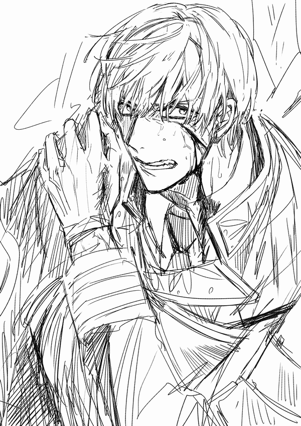 ※血注意。うっかり敵に片脚落とされた時の一期くんと鶴丸さん…これくらい反応違いそうってわやまさんと話してた…鶴丸さんは他人事みたいな反応で、一期くんは絶対殺すマンになってほしい