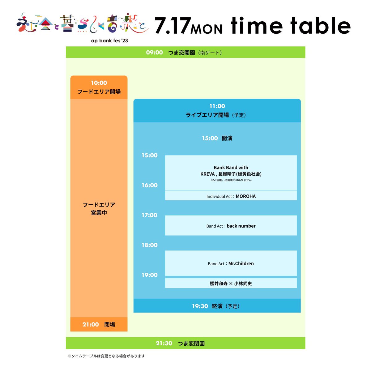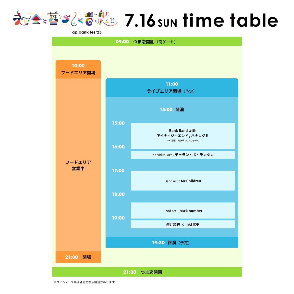 タイムテーブル発表‼️