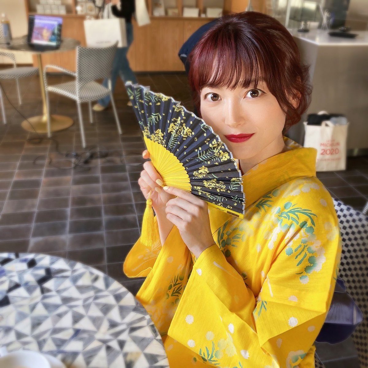うふふ…MUVEILの今年の浴衣を、ひと足先に着させてもらいました✨ミモザモチーフかわいすぎるよう!!!╰(*´︶`*)╯♡